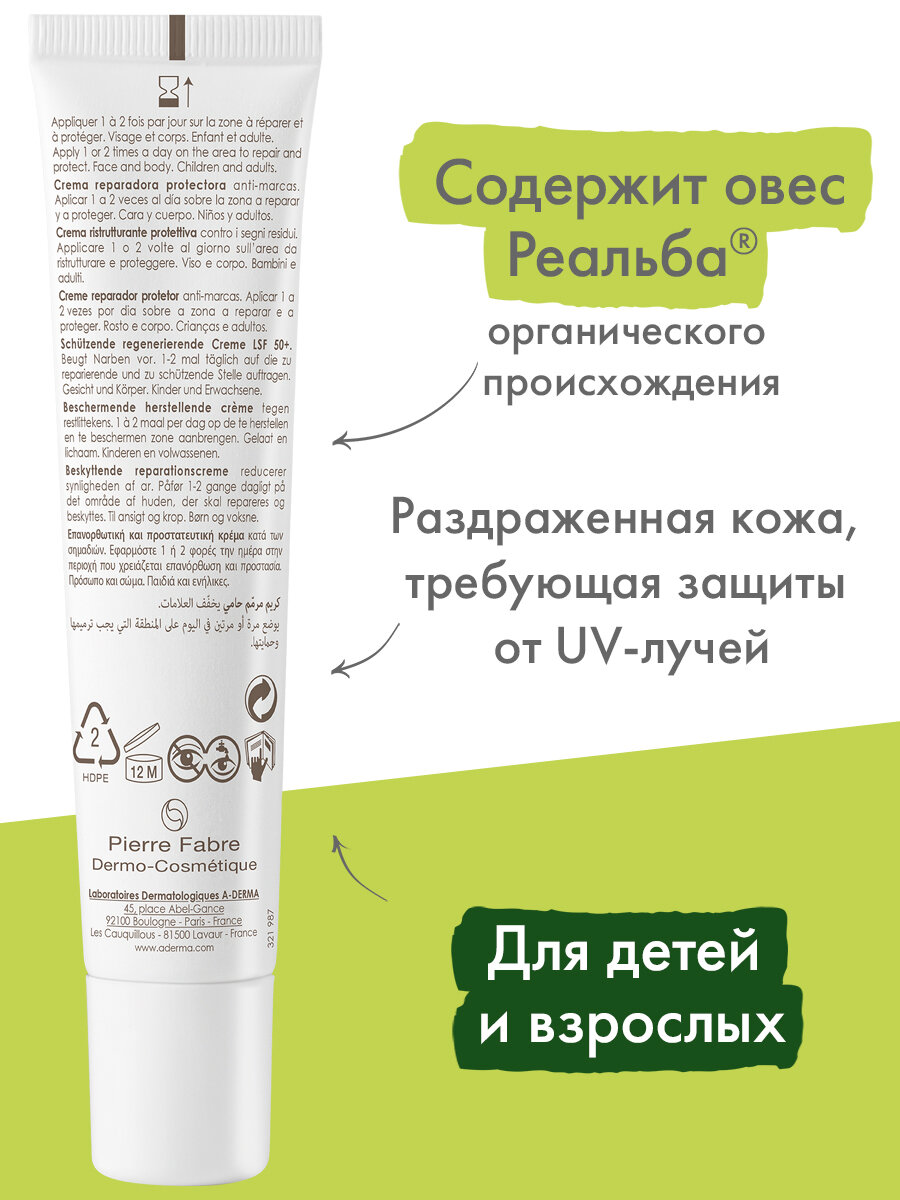 Крем для ослабленной кожи лица и тела защитный восстанавливающий с 2 лет SPF50+ A.H Ultra Epithelial A-derma/А-дерма туба 40мл Pierre Fabre Dermocosmetique (1303300)