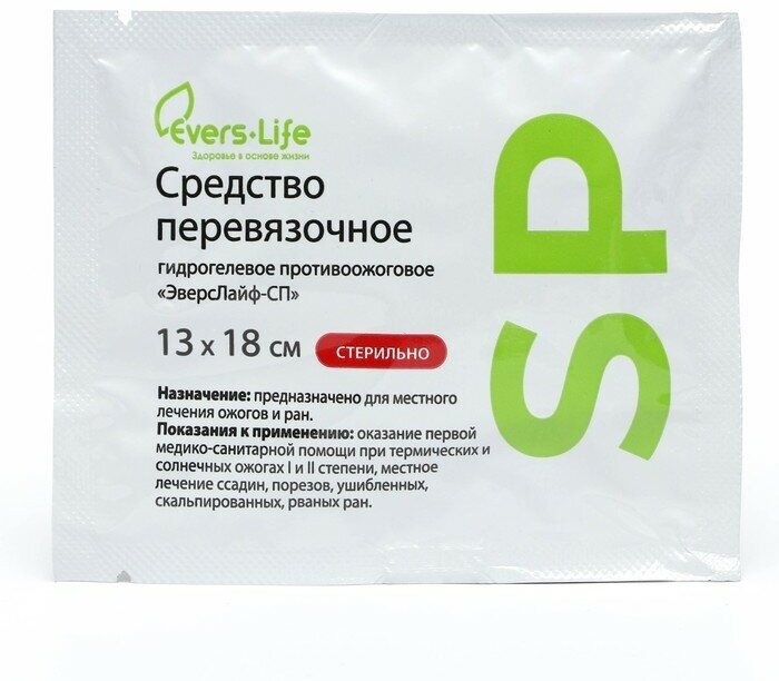 Средство перевязочное гидрогелевое стерильное противоожоговое ЭверсЛайф-СП Evers Life 13см х 18см ООО Эвтекс (570940)
