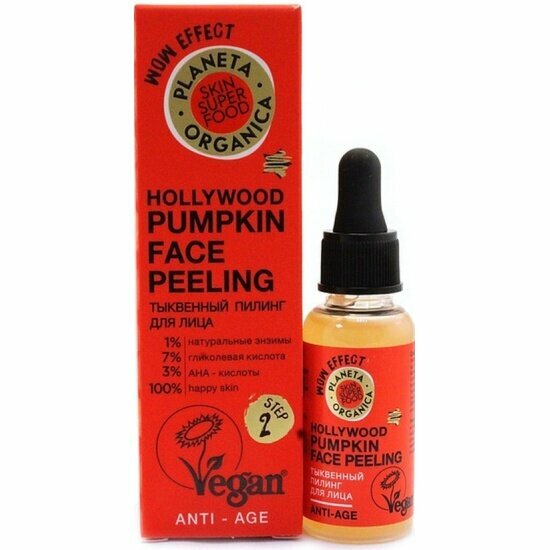 Всего несколько минут на то, чтобы сделать кожу чистой, молодой и сказочно красивой! Тыквенный пилинг моментально омолаживает и очищает кожу, освобождая ее от токсинов. Удивительно, но такой суперфуд как тыква очень полезен для кожи. Содержит натуральные энзимы и витамины А и С. Глубоко очищает поры, обновляет и разглаживает морщины, делая кожу гладкой и сияющей. Гликолевая кислота из сахарного тростника стимулирует синтез собственного коллагена, придавая коже упругость и эластичность. Натуральные AHA-кислоты из маракуйи предотвращают разрушение коллагена и эластина, защищают кожу от признаков старения, освежает и насыщает ее витаминами. Органический экстракт апельсина тонизирует и осветляют кожу, сокращая пигментацию. Кожа мгновенно становится гладкой, упругой, расширенные поры сужаются, разглаживаются морщинки и лицо преображается. Состав Aqua with infusions of Cucurbita Pepo Fruit Extract (экстракт тыквы), Daucus Carota Sativa Water (гидролат моркови), Passiflora Edulis Fruit Extract (органический экстракт маракуйи), Citrus Aurantium Dulcis Fruit Extract (органический экстракт апельсина) and Carica Papaya Fruit Extract (органический экстракт папайи), Glycolic Acid (гликолевая кислота), Lactic Acid (молочная кислота), Citric Acid (лимонная кислота), Hydroxypropyl Starch Phosphate (натуральный загуститель на основе крахмала), Panthenol (провитамин В5), Sodium Hydroxide (гидроксид натрия), Papain (энзим из папайи), Benzoic Acid (пищевой консервант из ягод брусники), Sorbic Acid (пищевой консервант из ягод клюквы).