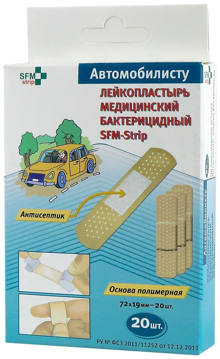 Набор Автомобилисту strip SFM: Лейкопластырь бактерицидный на полимерной основе 72х19мм 20шт SFM Hospital Products GmbH (1208521)