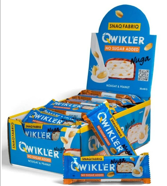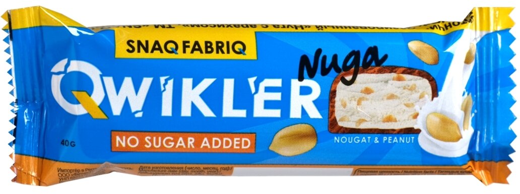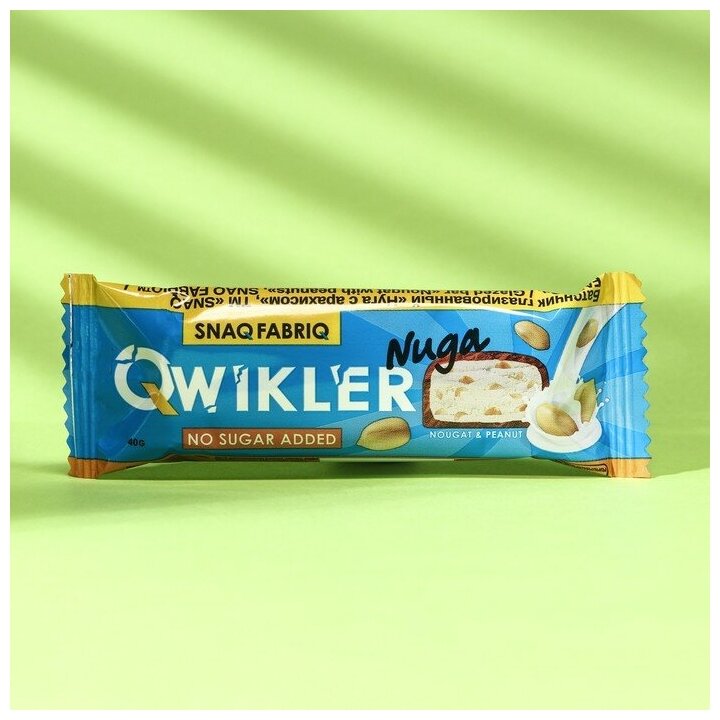 QWIKLER - это новая линейка батончиков от Снек Фабрик, производителя полезных продуктов без сахара с ярким вкусом и максимальной пользой! Батончик глазированный "Нуга с арахисом", ТМ "SNAQ FABRIQ", 40 гр. - это много-много орехов, перемешанных в толстом слое ароматной карамели, покрытых настоящим молочным шоколадом! В одном батончике всего 3 грамма углеводов!Батончик подходит для тех, кто всегда в движении, кто придерживается правильного питания и ЗОЖ, любит спортивное питание. Батончики можно взять всегда с собой, они поместятся в сумку, в рюкзак, в шоппер, в пляжную сумку, в клатч, в портфель, в поясную сумку. Низкокалорийные десерты - это полезный перекус в любое время и в любом месте. Можно поделится с друзьями или подарить вкусный подарок близкому человеку.Это идеальный перекус, наполняющий энергией и позитивом!