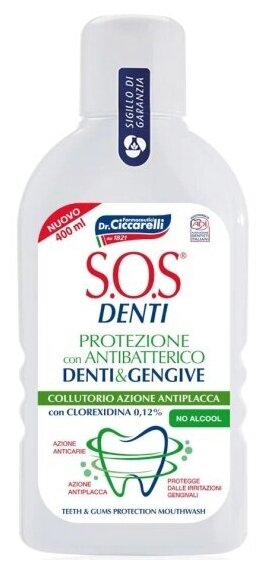 Ополаскиватель для полости рта антибактериальный для защиты зубов и десен SOS Denti 400мл Farmaceutici Dottor Ciccarelli S.P.A (2369318)