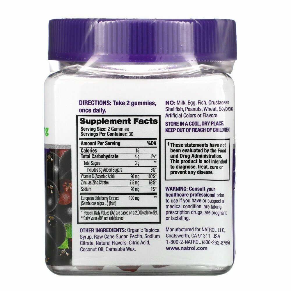 Жевательные конфеты из бузины от Natrol®, изготовленные из эффективной смеси экстракта плодов бузины, витамина С и цинка, — это новый вкусный способ поддержать здоровье иммунитета.
