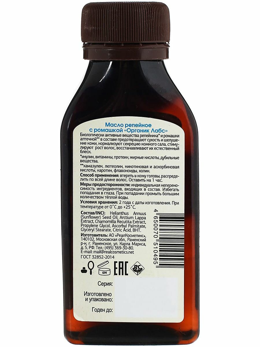 Масло для волос и кожи головы репейное с ромашкой Organic labs РеалКосметикс 100мл РеалКосметикс АО (1161587)