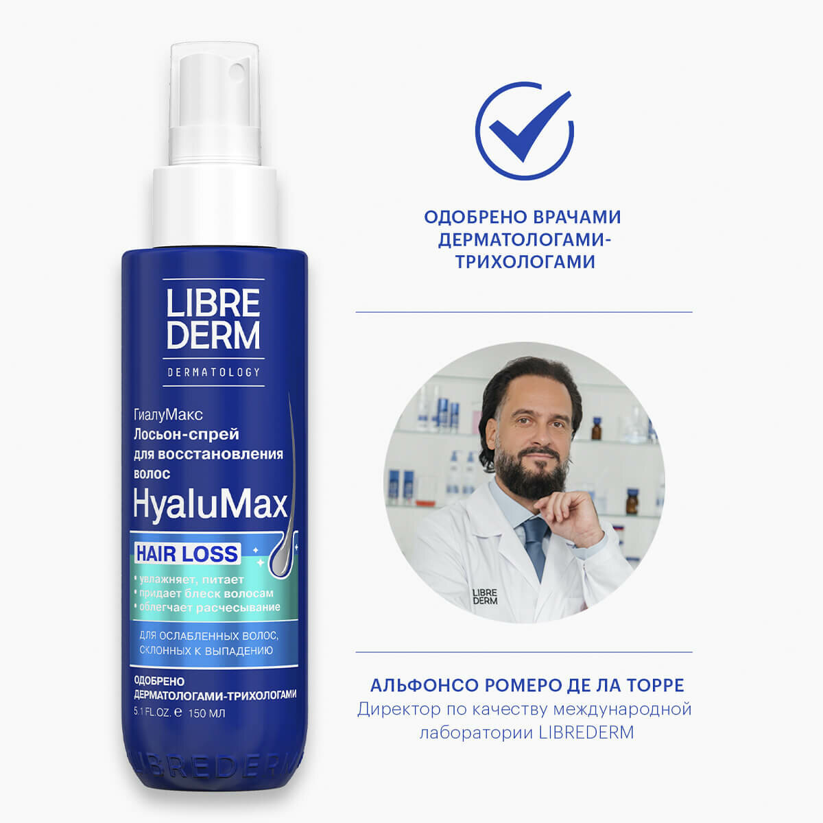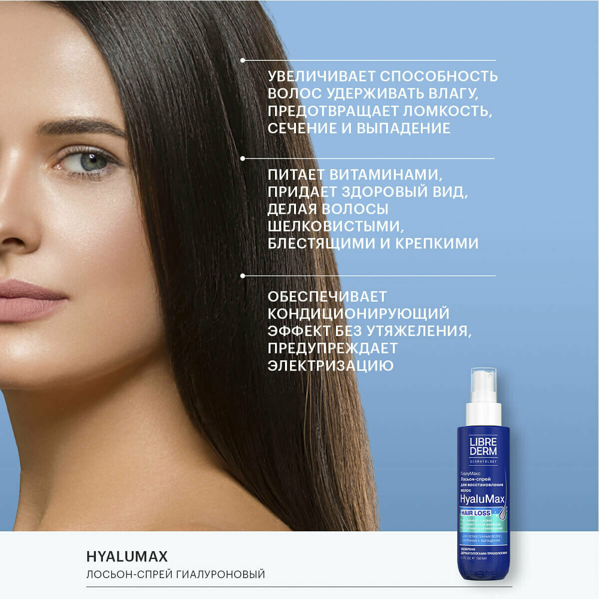 Лосьон-спрей для восстановления ослабленных волос гиалуроновый HyaluMax Librederm/Либридерм 150мл ООО БИОФАРМЛАБ (1460148)