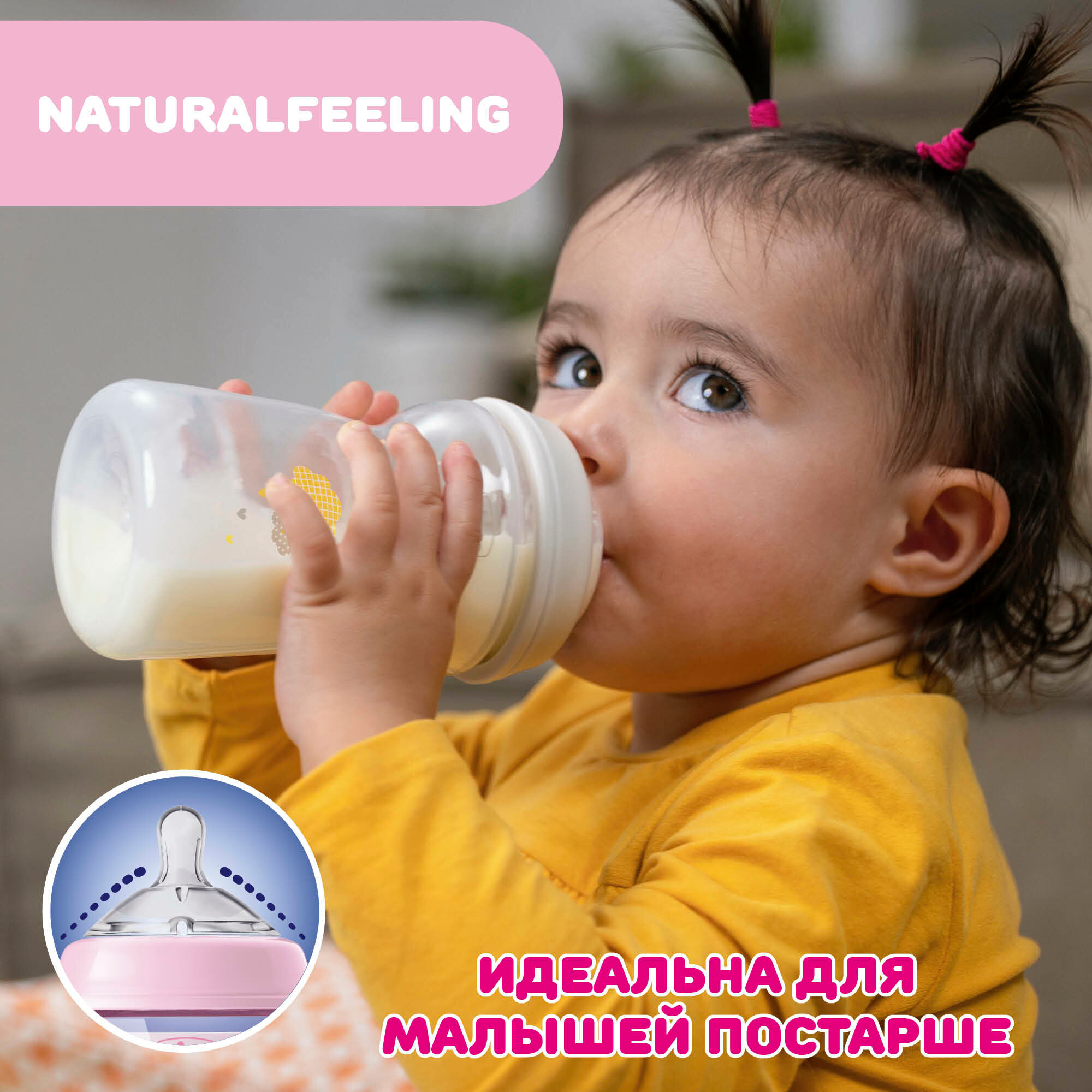 Бутылочка с силиконовой соской с флексорами белая от 6 мес. Natural Feeling Chicco/Чикко 330мл Artsana S.p.A (1430502)