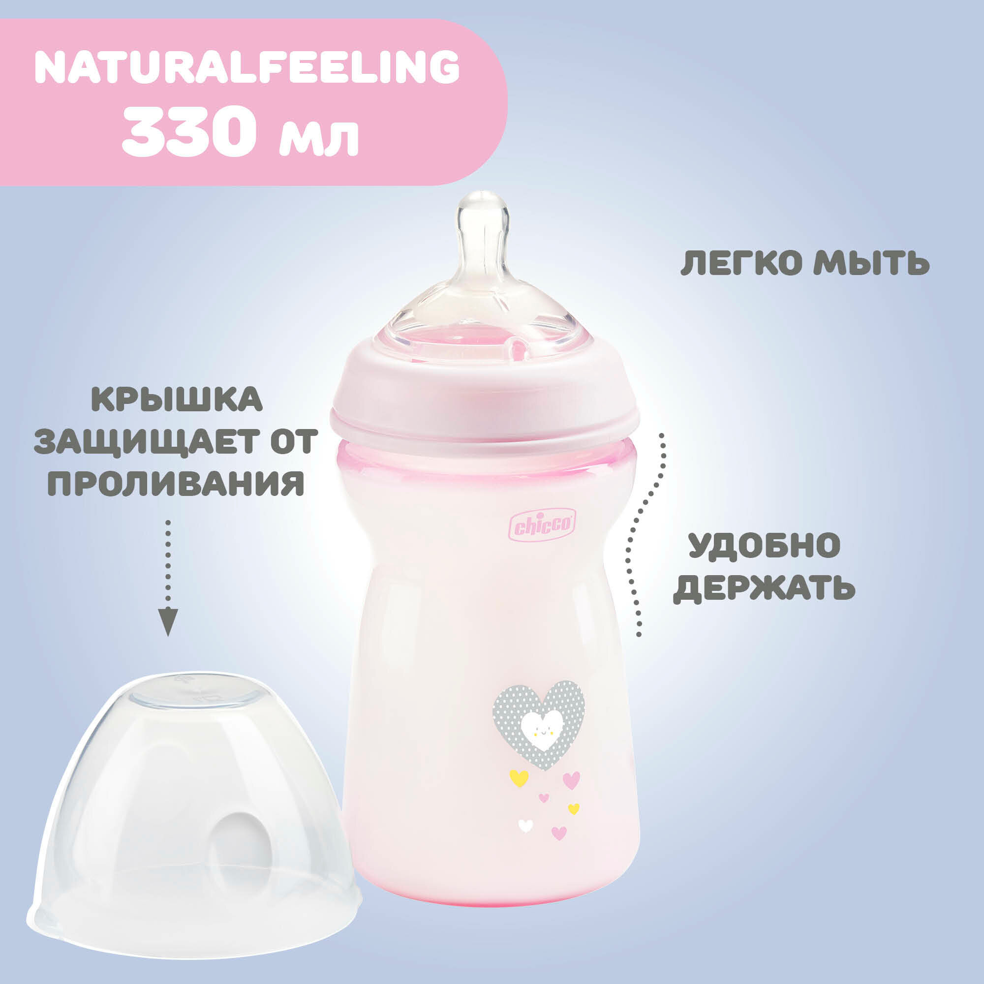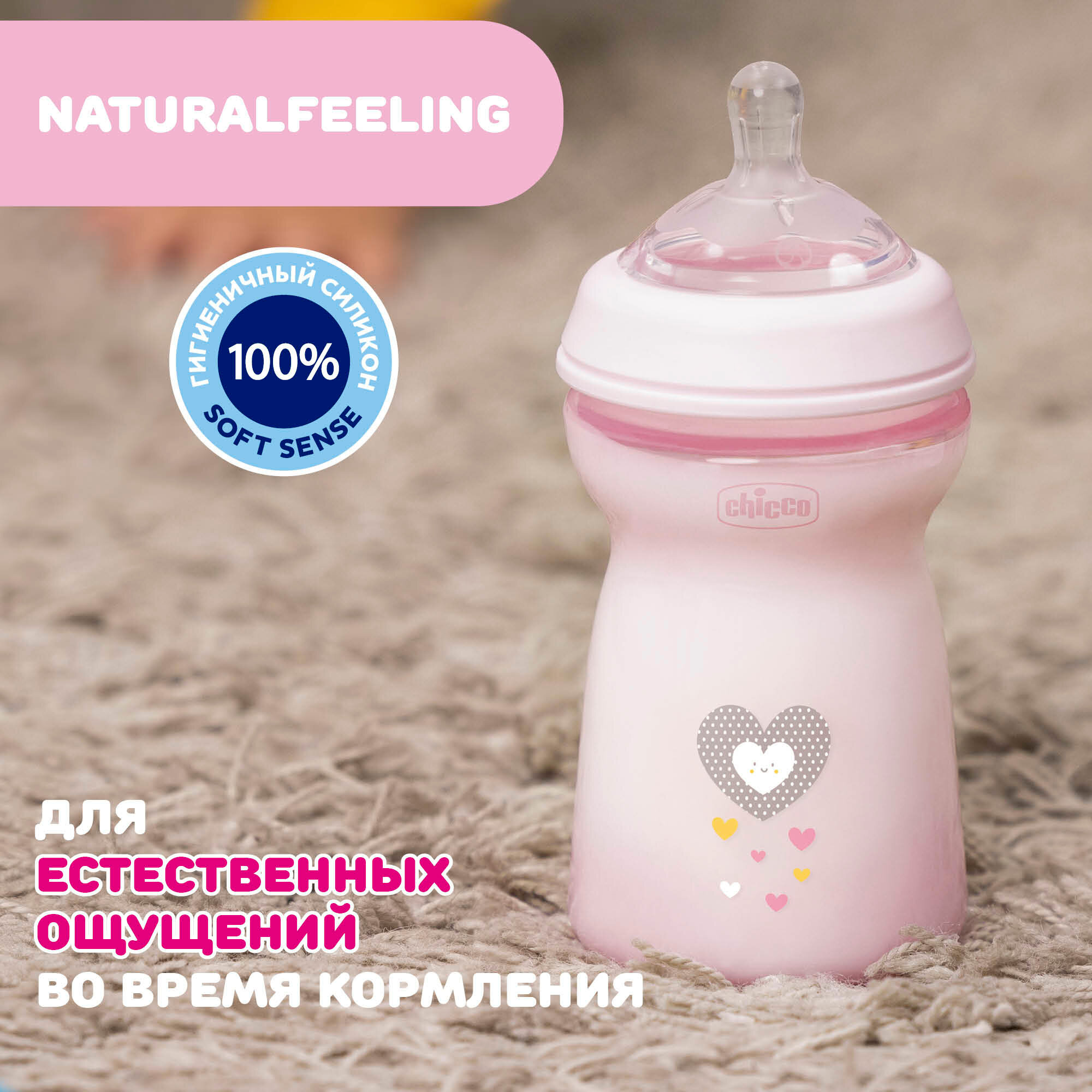 Бутылочка с силиконовой соской с флексорами розовая от 6 мес. Natural Feeling Chicco/Чикко 330мл Artsana S.p.A (1430502)
