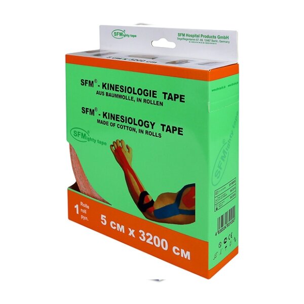Лейкопластырь кинезио тейп SFM 5 СМ Х 3200 СМ, С логотипомЛейкопластырь кинезио тейп SFM, 5 см Х 3200 см, с логотипом изготовлен из хлопка с нанесением на него клейкой гипоаллергенной основы. Кинезиотейп SFM 5 см на 3200 см используется для профилактики и лечения травм опорно-двигательного аппарата, способен быстро уменьшить боль и воспаление, как при спортивных травмах, так и в повседневной жизни.Спортивный пластырь обладает уникальными эластичными свойствами, которые позволяют обеспечивать поддержку и защиту мышц или суставов без изменения диапазона движения. Кинезио тейп можно носить 24 часа в сутки, до 5 дней. Спортивный лейкопластырь кинезио тейп SFM 5 см Х 3200 см можно использовать во время интенсивных физических упражнений, душа и плавания.Производство SFM Hospital Products GmbH, Германия длина – 3200 см; ширина - 5 см; основа - тканевая; легко отрезать; эластичный; воздухопроницаемый; хорошо приклеивается; просто снимается; есть предел прочности при растяжении; без латекса; рулон с бумажным сердечником; назначение - спортивная медицина; упаковка - диспенсер; срок годности - 5 лет