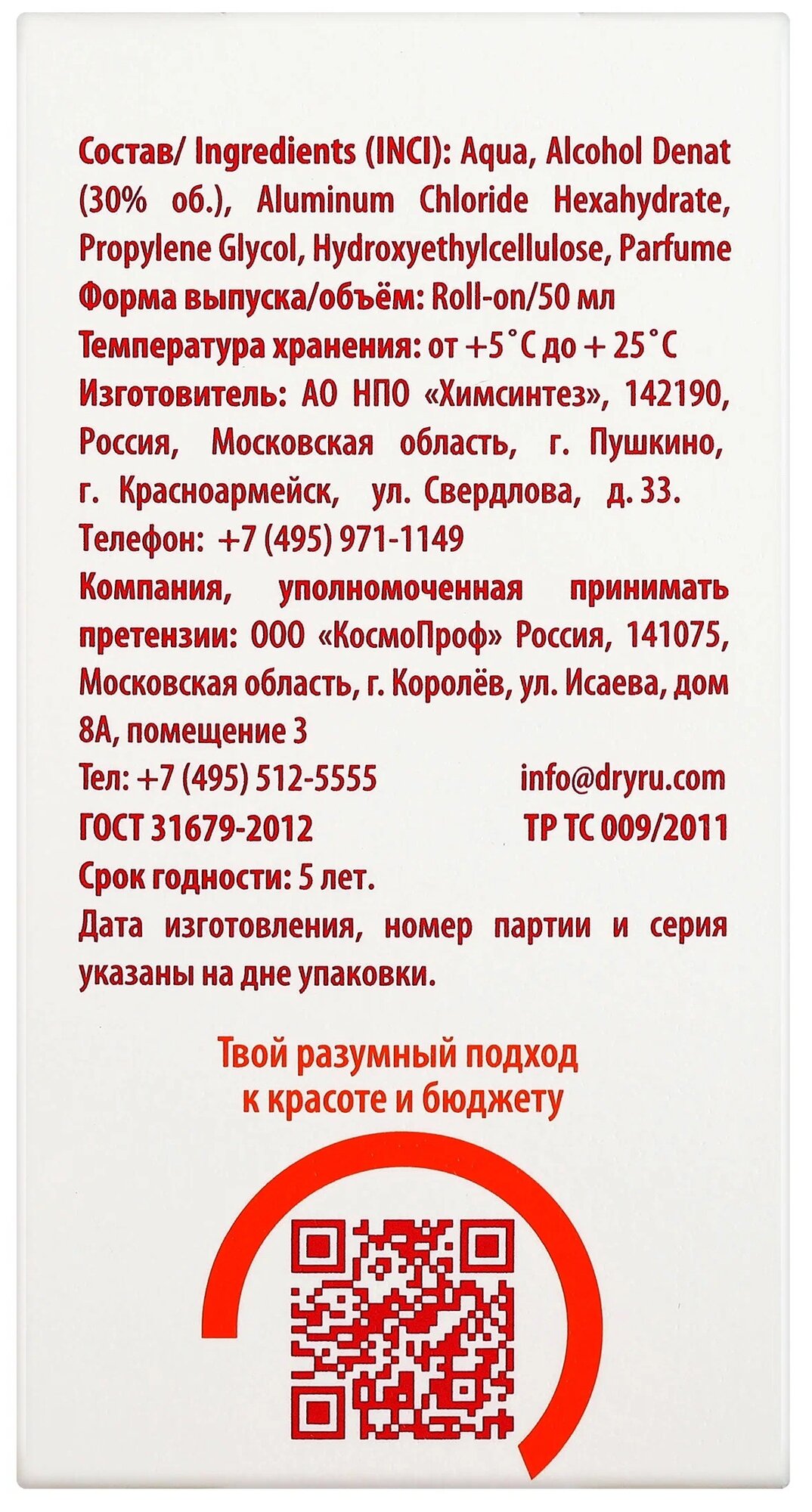 Сервис сравнения цен СкидкаГИД предлагает сравнить цены на товар «Антиперспирант для уверенных в себе женщин Roll-On Sure Woman Dry Ru/Драй Ру 50мл ЗАО НПО Химсинтез (1090443)»