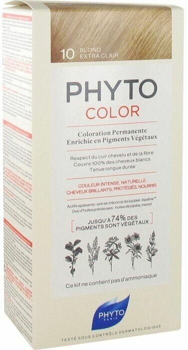 Набор Phyto/Фито: Краска-краска для волос 50мл тон 10 Экстра-светлый блонд+Молочко 50мл+Маска-защита цвета 12мл+Перчатки Laboratoires Phytosolba (1122931)