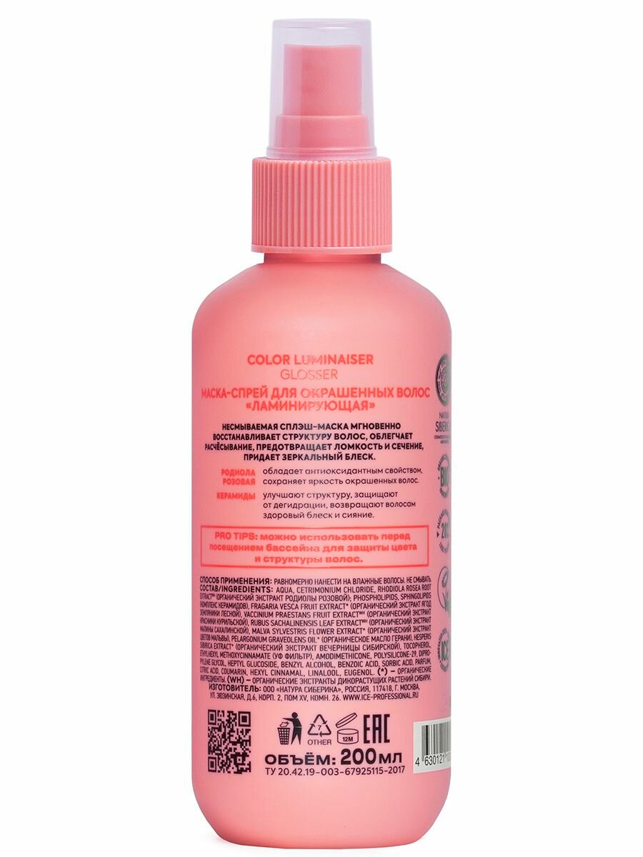 Маска-спрей для окрашенных волос ламинирующая Color Luminaiser ICE Professional Natura Siberica/Натура Сиберика 200мл ООО Натура Сиберика (1525014)