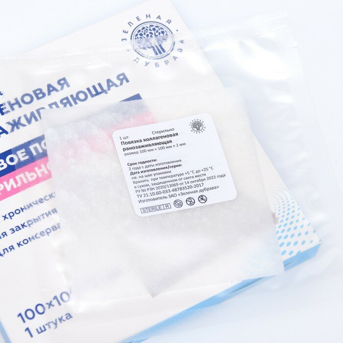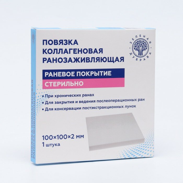 Повязка ранозаживляющая коллагеновая 100х100х2мм ЗАО Зеленая дубрава (1486480)