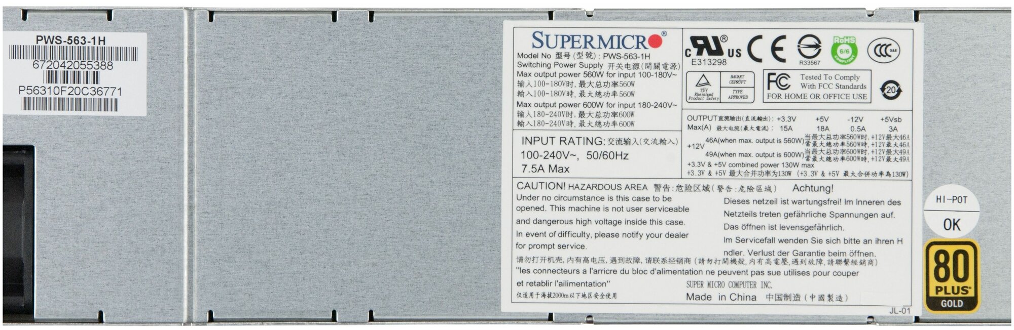 Блок питания Supermicro PWS-563-1H