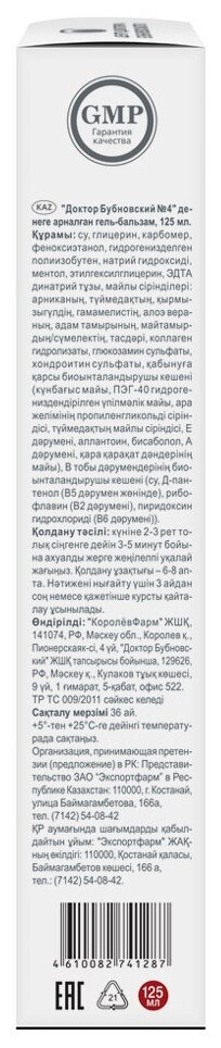 Гель-бальзам для тела травмы и растяжения №4 Бубновский 125мл ООО КоролевФарм (572870)