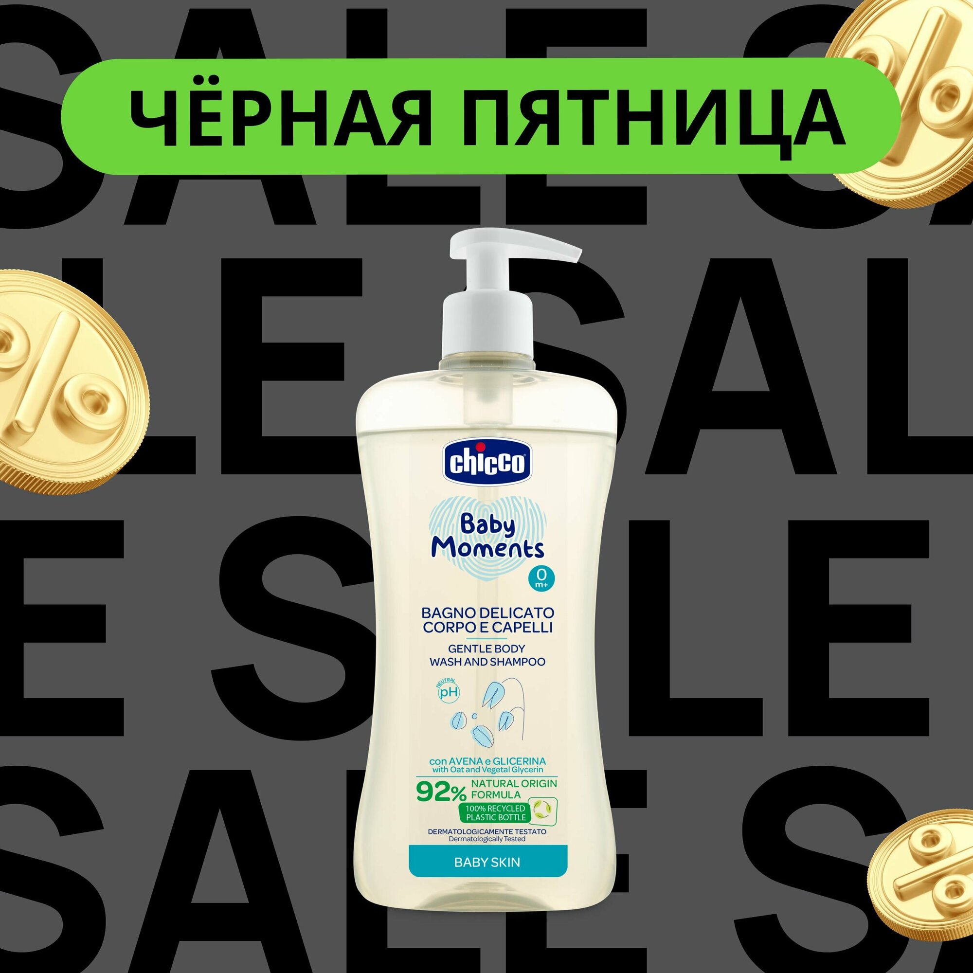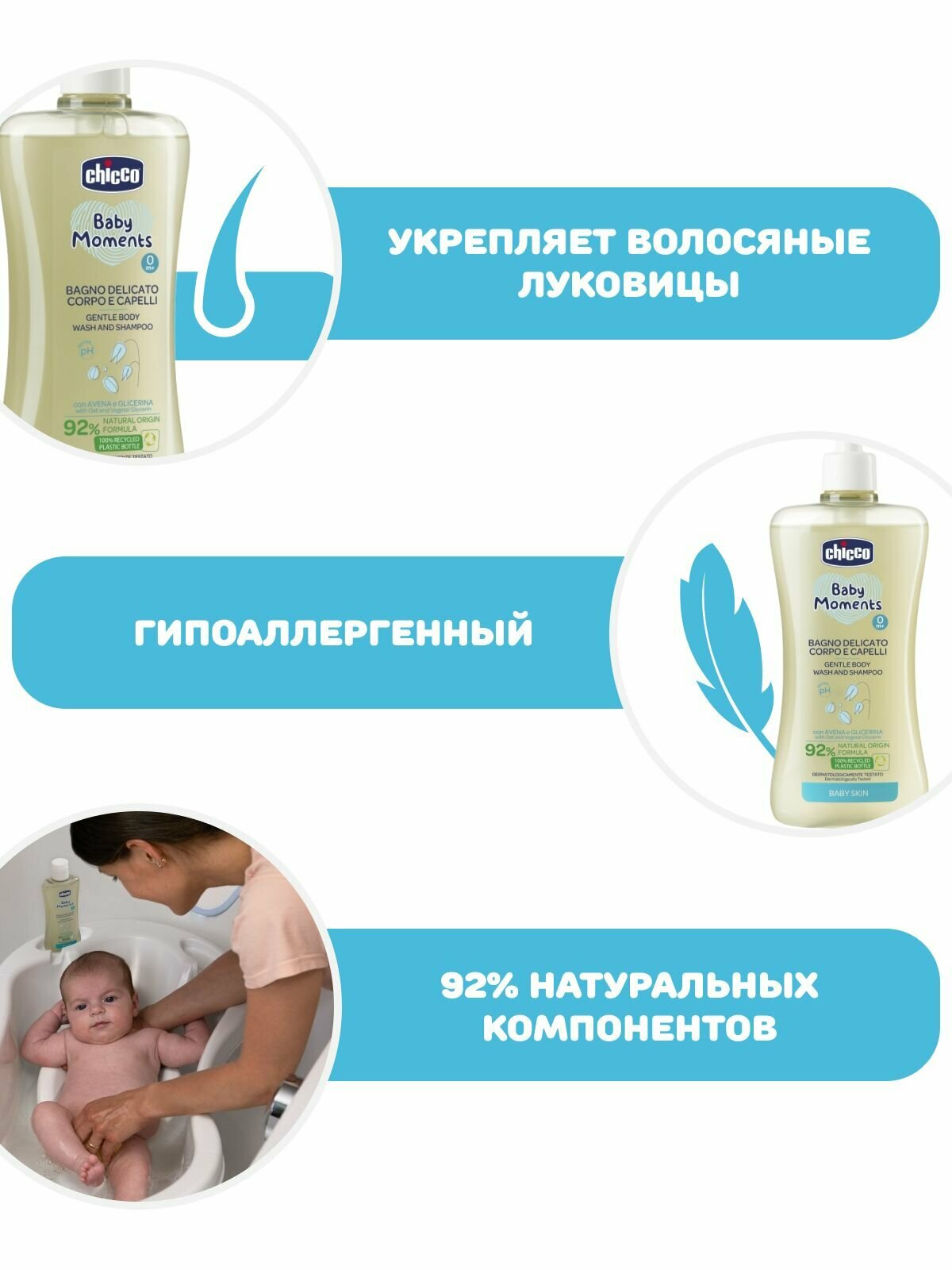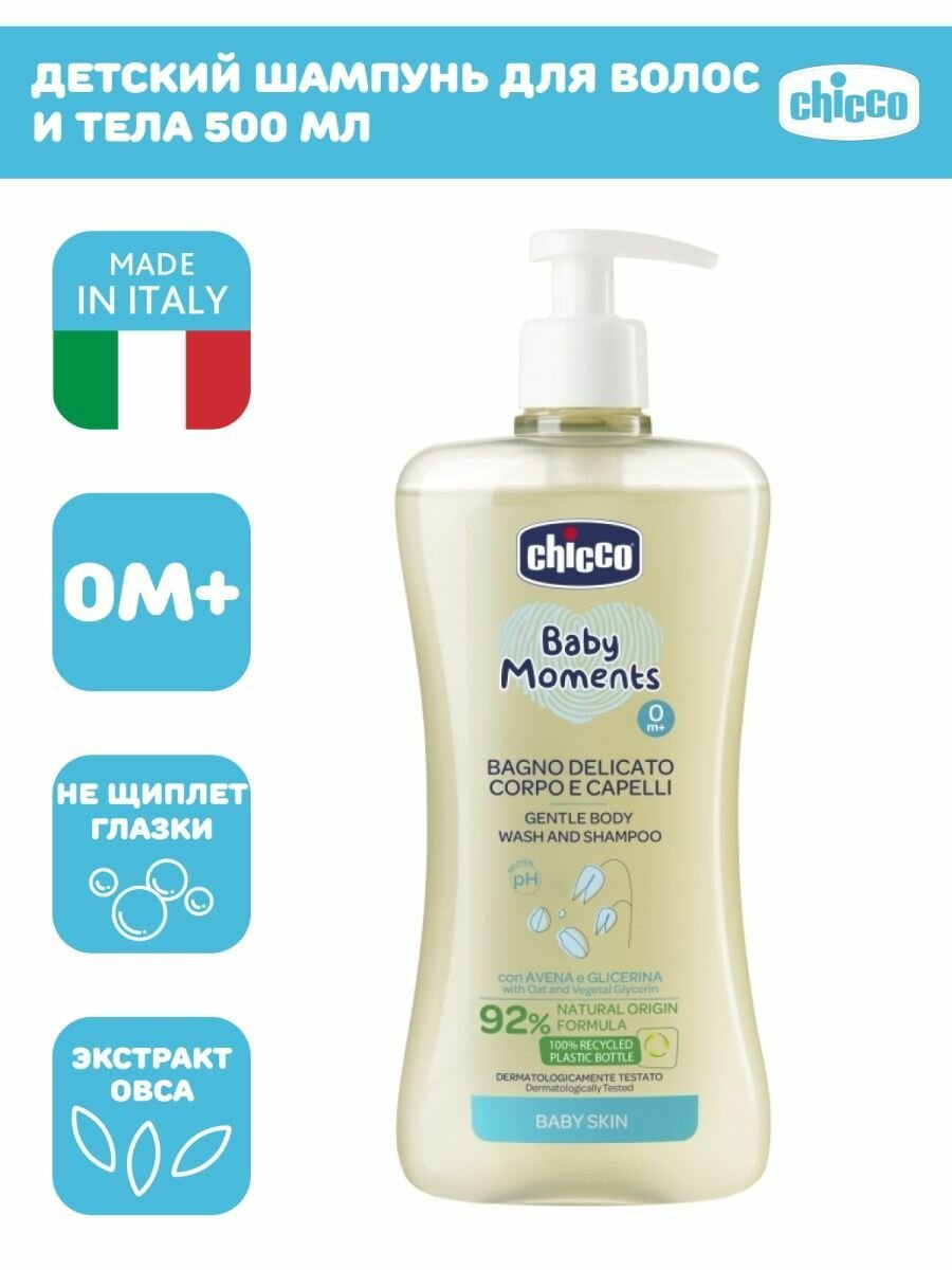 Пена для тела и волос для детей с 0 лет нежная Baby moments Chicco/Чикко фл. 500мл Artsana S.p.A (1430502)