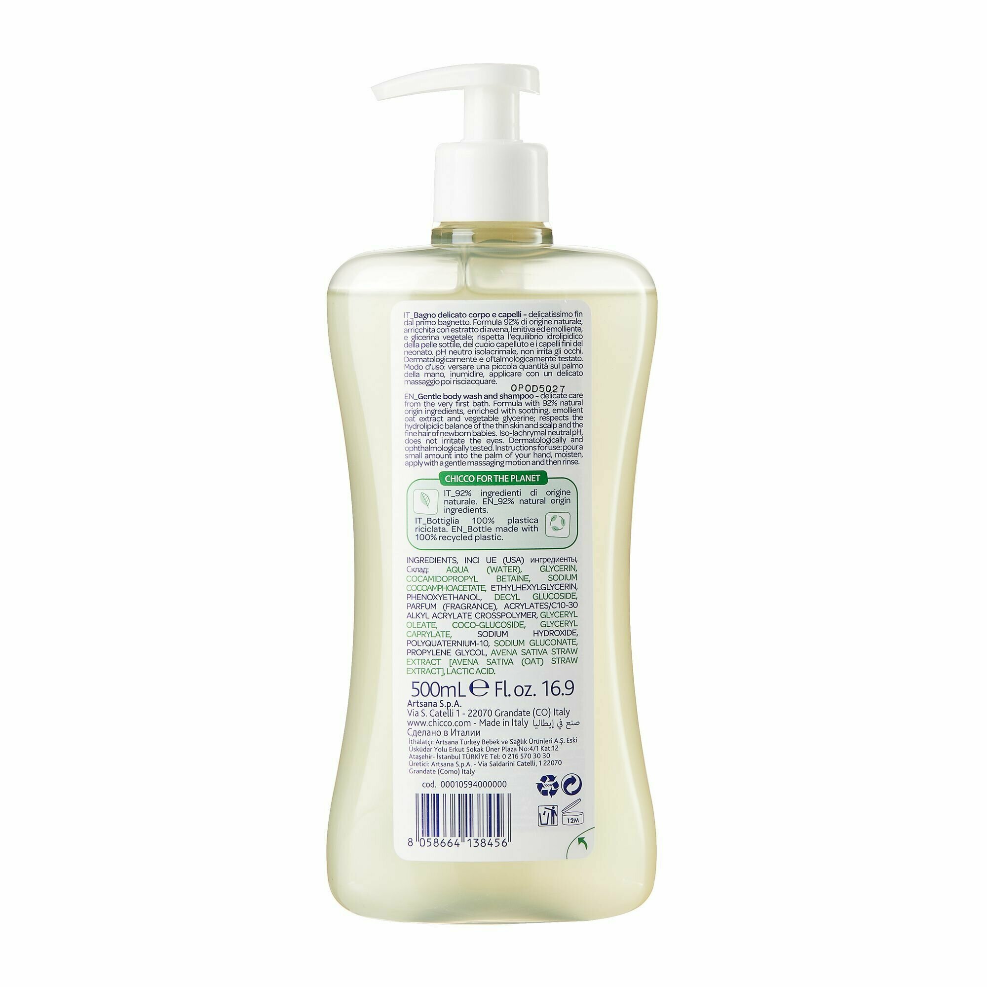 Сервис сравнения цен СкидкаГИД предлагает сравнить цены на товар «Пена для тела и волос для детей с 0 лет нежная Baby moments Chicco/Чикко фл. 500мл Artsana S.p.A (1430502)»