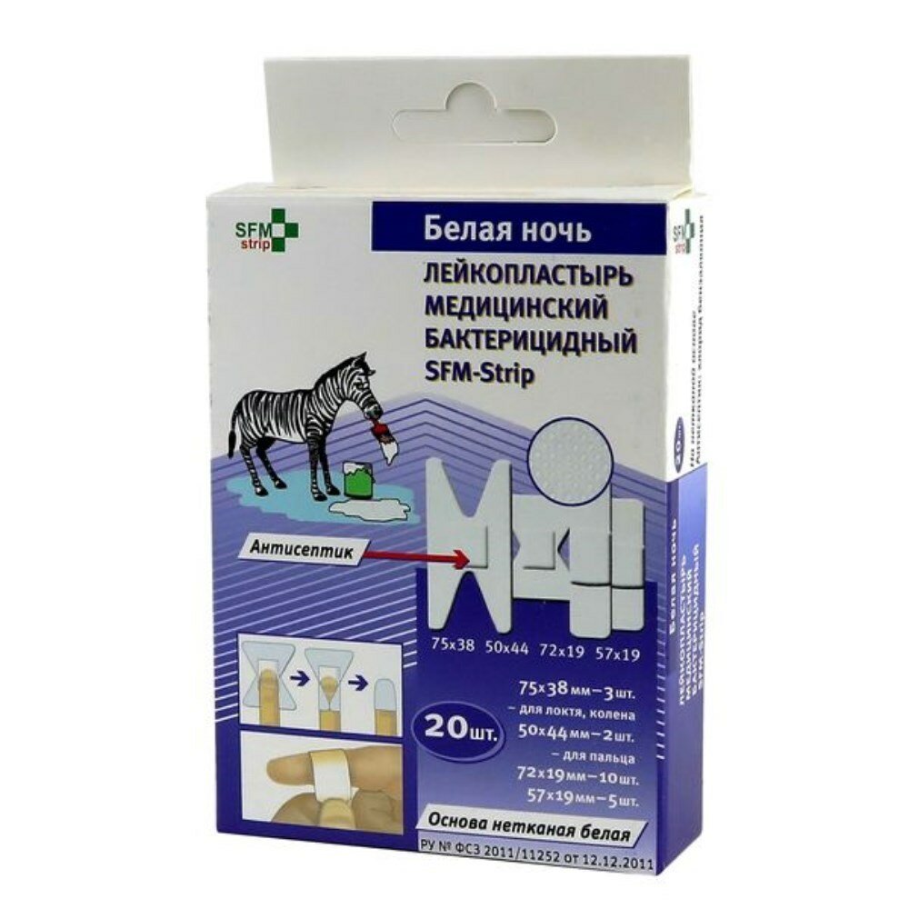 На сегодняшний день товар «Набор Белая ночь strip SFM: Лейкопластырь бактерицидный на нетканой белой основе 20шт SFM Hospital Products (1536562)» можно купить с кешбеком в 1 магазине: Яндекс.Маркет
