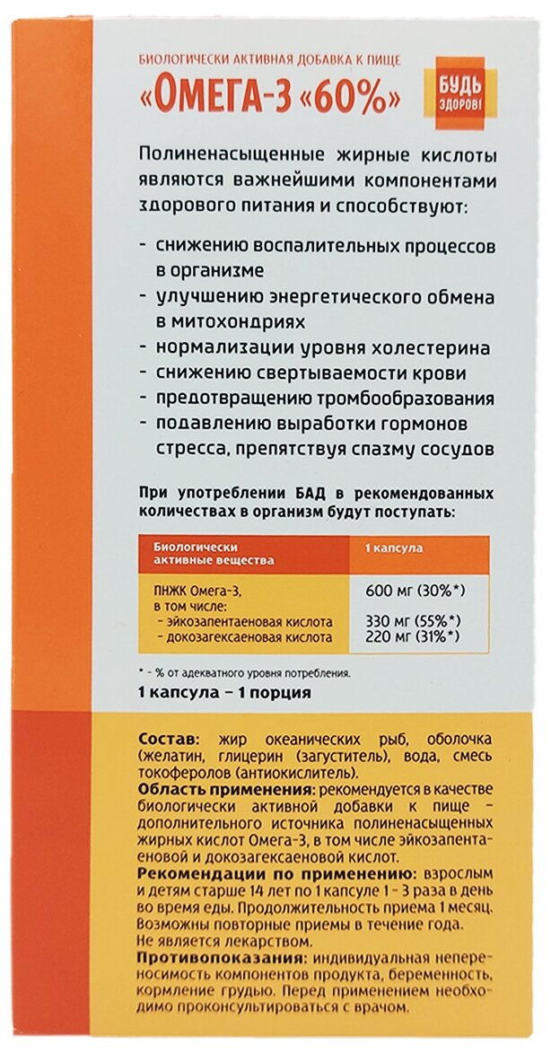 Омега-3 60% Будь Здоров! капсулы 30шт ООО Полярис (1092785)