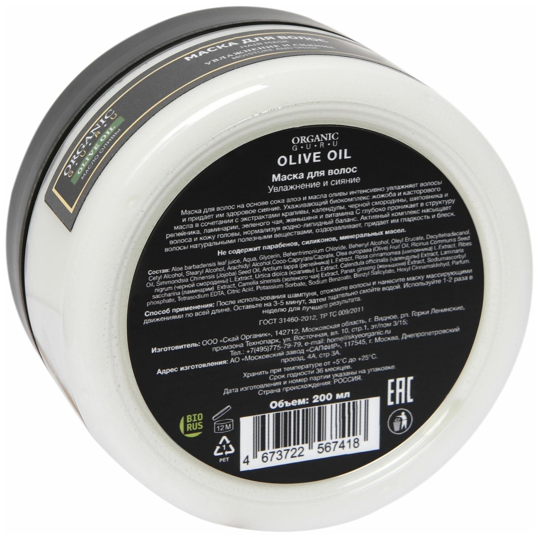 Маска для волос ORGANIC GURU OLIVE OIL Увлажнение и Сияние