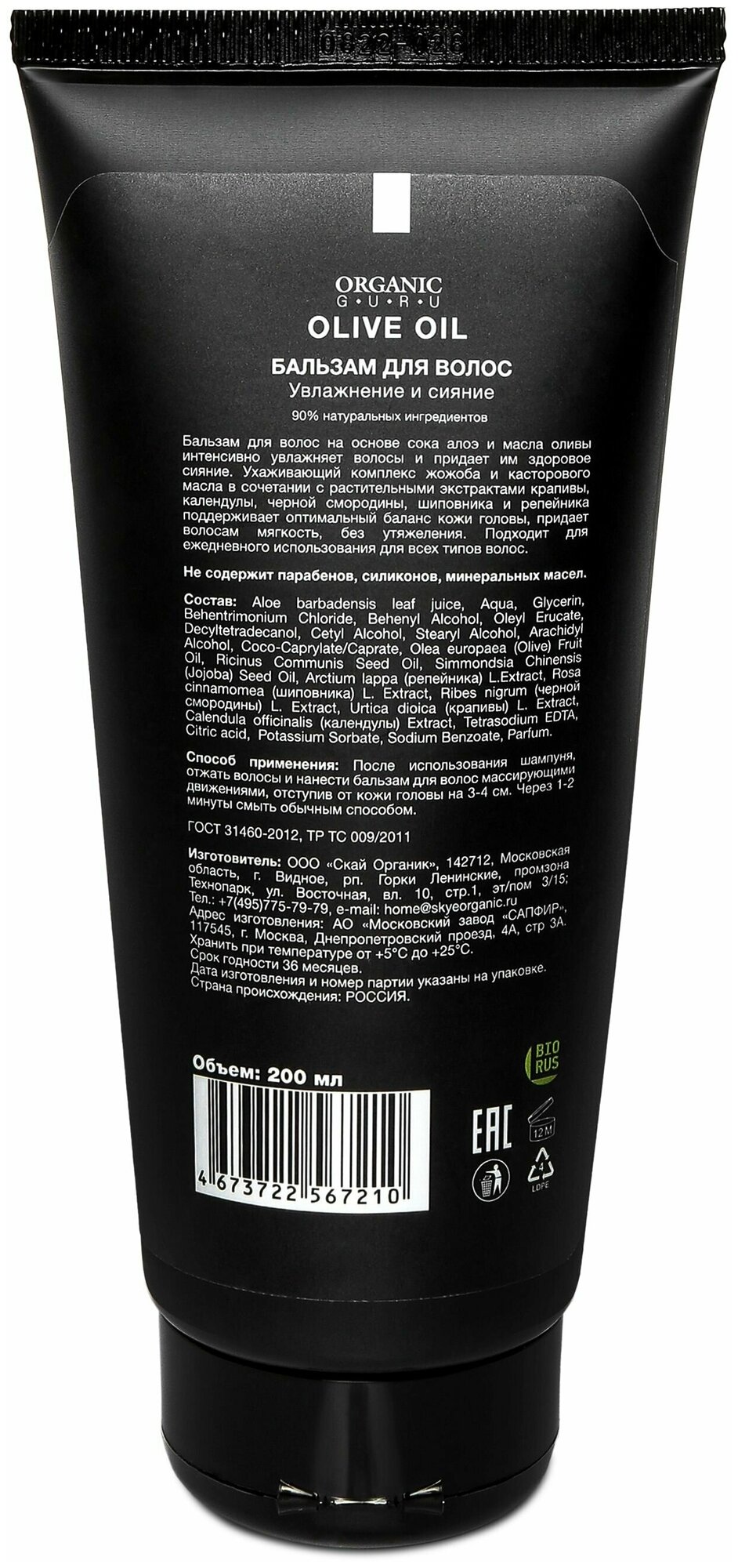 Бальзам ополаскиватель Olive oil Organic Guru 200мл Skye Organic (1592268)
