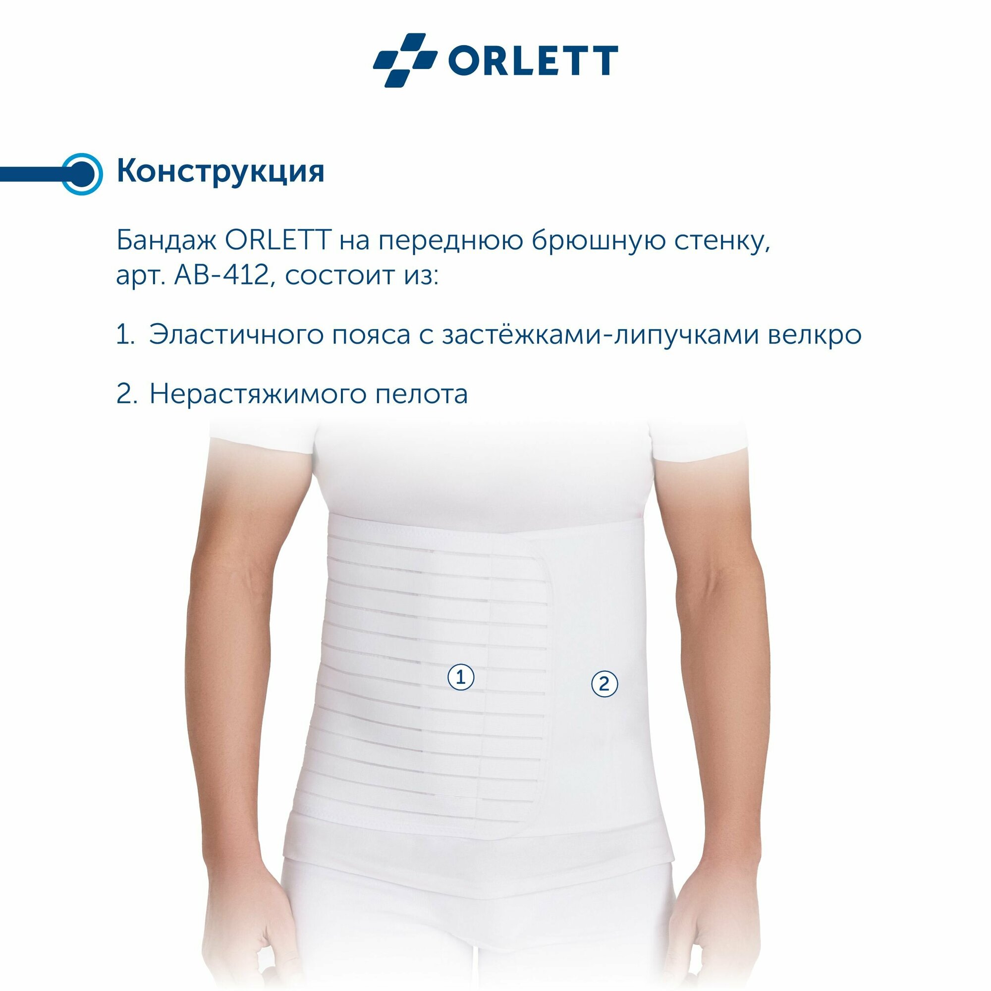 Медицинский бандаж на брюшную стенку Orlett AB-412 предназначен для легкой фиксации и поддержки передней брюшной стенки, что достигается за счет нерастяжимого пелота, совмещаемого с проблемным участком и натяжения эластичного материала, опоясывающего туловище.Бандаж способствует формированию послеоперационного рубца, в том числе и глубокого (мышечного) за счет защиты и разгрузки соединительнотканного и мышечного аппарата брюшной стенки. Показания к применению медицинского бандажа Orlett AB-412: Ранняя мобилизация после операций на органах брюшной полости; Профилактика образования послеоперационных грыж передней брюшной стенки (при слабости мышц, после больших разрезов); Профилактика ущемления вправляемых послеоперационных грыж, грыж белой линии живота, пупочных грыж; Бандаж может назначаться в период восстановления после нормальных родов, в качестве поддержки при опущении внутренних органов брюшной полости, почек, ожирения 3-4 степени (для подтяжки живота и улучшения силуэта в эстетических целях), при реабилитации после липосакции передней брюшной стенки, а также после пластических операций. Особенности бандажа: Для удобства фиксации бандажа большие размеры, начиная с размеров XL, снабжены двойным правым клапаном; Высота бандажа - 30 см; Изготовлен из прочного эластичного медицинского полотна; Снабжен вентилируемой хлопковой вставкой и надежной застежкой «Велкро»; Бандаж незаметен под одеждой; Изготовлен по технологиям CHLORIN FREE и LATEX FREE; Бандаж рекомендуется надевать в положении лежа перед подъемом с постели. Рекомендации по уходу: перед стиркой застегнуть все застежки; рекомендована ручная стирка при температуре 30°С, отдельно от других вещей, с использованием моющего средства для деликатных тканей; не тереть и не выжимать изделие; после стирки тщательно прополоскать послеоперационный бандаж; сушить в расправленном состоянии вдали от нагревательных приборов и прямого солнечного света; не гладить, не использовать растворители, отбеливатели и химическую чистку; хранить изделие в сухом месте при комнатной температуре; избегать попадания влаги, воздействия высоких температур и прямых солнечных лучей.