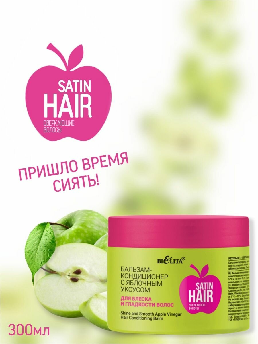 Бальзам-кондиционер для блеска и гладкости волос с яблочным уксусом Satin hair Белита 300мл Белита СП ООО (578415)