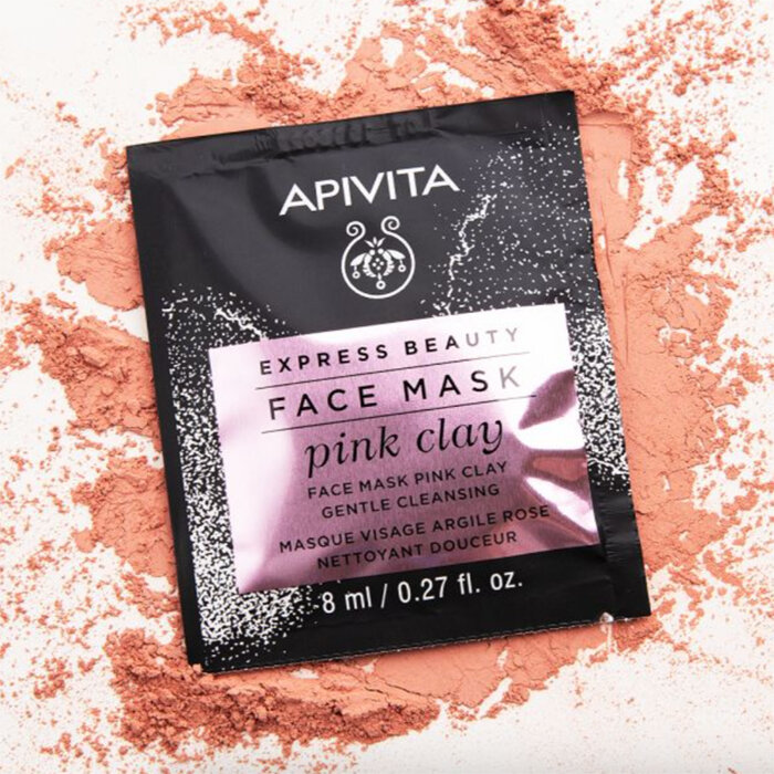 **92% натуральных ингредиентов**Маска для деликатного очищения, подходит для всех типов кожи. Идеально подходит для нормальной, сухой и чувствительной кожи. Вдохновением для линии Красота Экспресс послужила идея средиземноморской диеты для кожи с ее разнообразием фруктов и овощей, содержащих ценные вещества для сбалансированного питания и здоровья кожи**Свойства:**- Маска для лица с Розовой Глиной богата микроэлементами, мягко очищает и устраняет избыток себума и ежедневные загрязнения, сужает поры.- Благодаря органическому Алое, греческому меду из Чабреца и эфирному маслу Розы, помогает коже сохранять естественный уровень увлажнения, придает мягкость и свежесть.**В составе средства вода заменена на отвар греческого горного чая с антиоксидантным действием.****Применение:** **:** нанести плотным слоем на предварительно очищенную кожу лица, избегая области вокруг глаз. Оставить на 10 минут и затем тщательно смыть с водой. Использовать 1-2 раза в неделю.