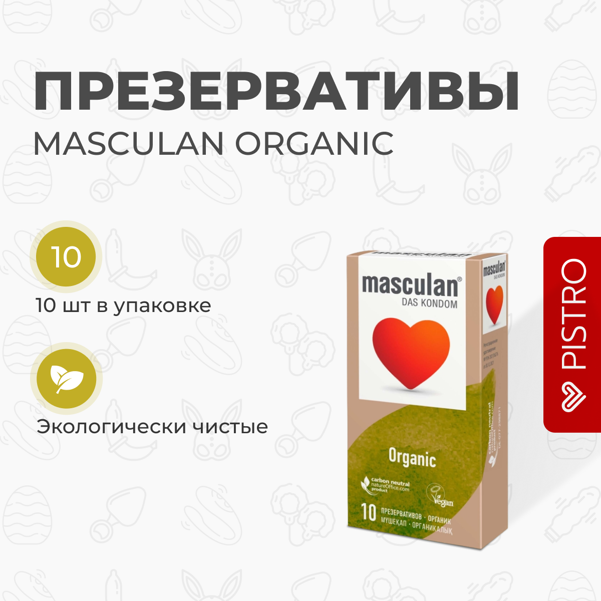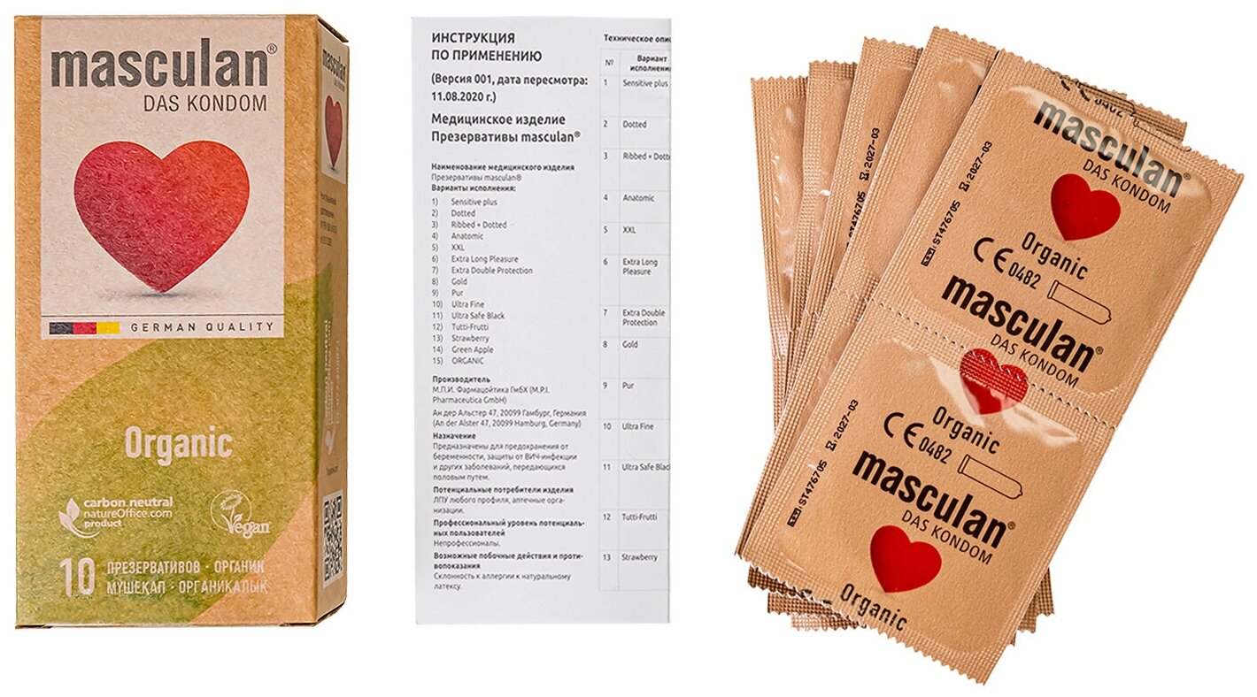 Презервативы masculan Organic – экологически чистые презервативы классической формы, изготовленные с заботой о природе. Тонкие, без рельефа, из натурального латекса. Во время производства не выделяется углекислый газ, внешняя упаковка – из вторсырья. С гелем-смазкой и резервуаром. СО2 нейтральные. Не содержат животного белка. 0% полиэтилена в упаковке. В 2 раза < алюминия в защитной фольге. Ширина: 53 +- 1 мм. Премиальное немецкое качество