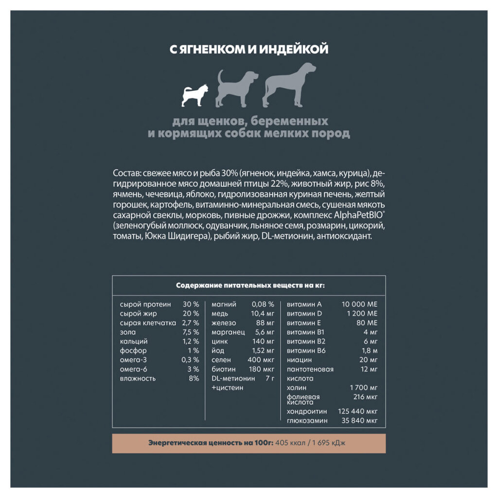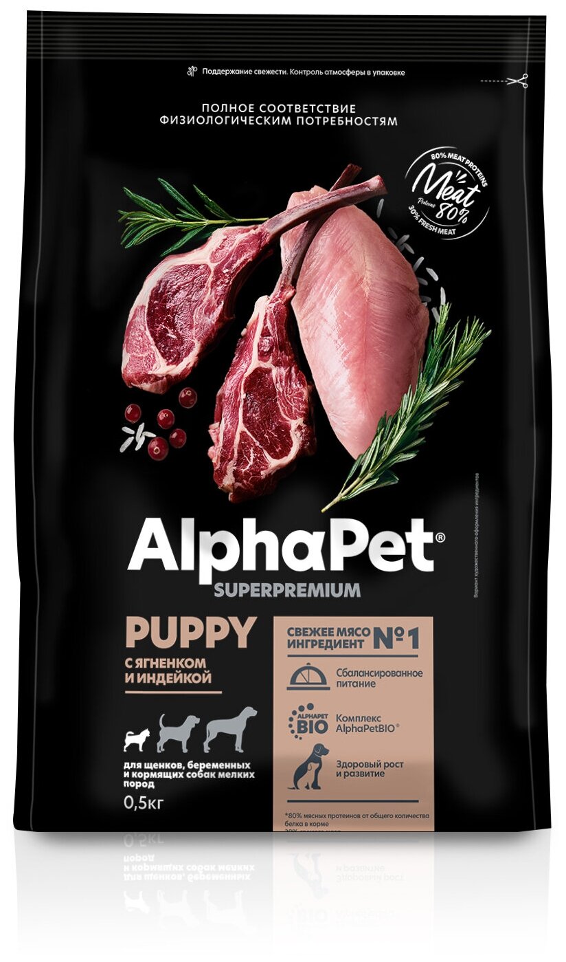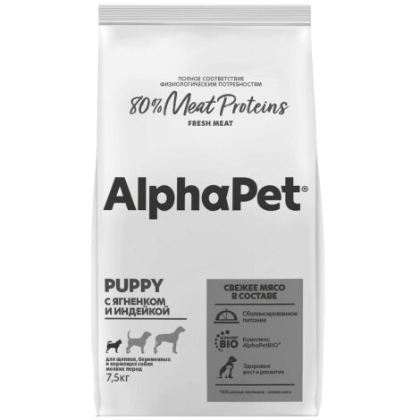 Корм сухой для щенков и беременных собак мелких пород с ягненком и индейкой Superpremium AlphaPet 75кг ООО НПЦ Кормовых Технологий (2413872)