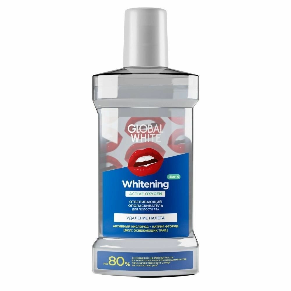 Отбеливающий ополаскиватель с активным кислородом осветляет эмаль, расщепляя поверхностный налет. Поддерживает результат после отбеливания. Не содержит спирт, который приводит к сухости рта, что в свою очередь может вызвать неприятный запах изо рта и рост болезнетворных бактерий.