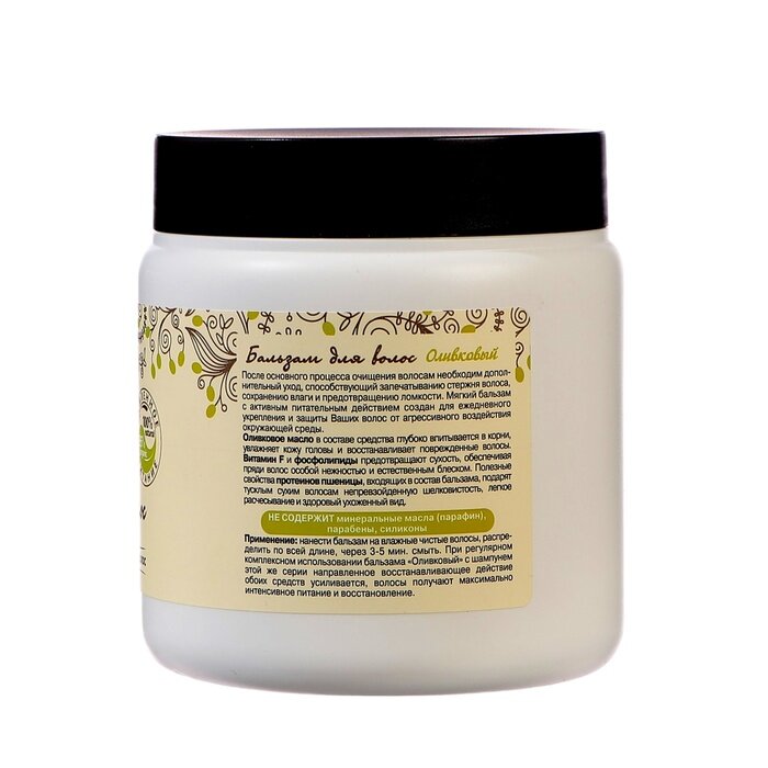 После основного процесса очищения волосам необходим дополнительный уход, способствующий запечатыванию стержня волоса, сохранению влаги и предотвращению ломкости. Мягкий бальзам с активным питательным действием создан для ежедневного укрепления и защиты Ваших волос от агрессивного воздействия окружающей среды. Оливковое масло в составе средства глубоко впитывается в корни, увлажняет кожу головы и восстанавливает поврежденные волосы. Витамин F и фосфолипиды предотвращают сухость, обеспечивая пряди волос особой нежностью и естественным блеском. Полезные свойства протеинов пшеницы, входящих в состав бальзама, подарят тусклым сухим волосам непревзойденную шелковистость, легкое расчесывание и здоровый ухоженный вид. НЕ содержит минеральные масла (парафин), парабены, силиконы.