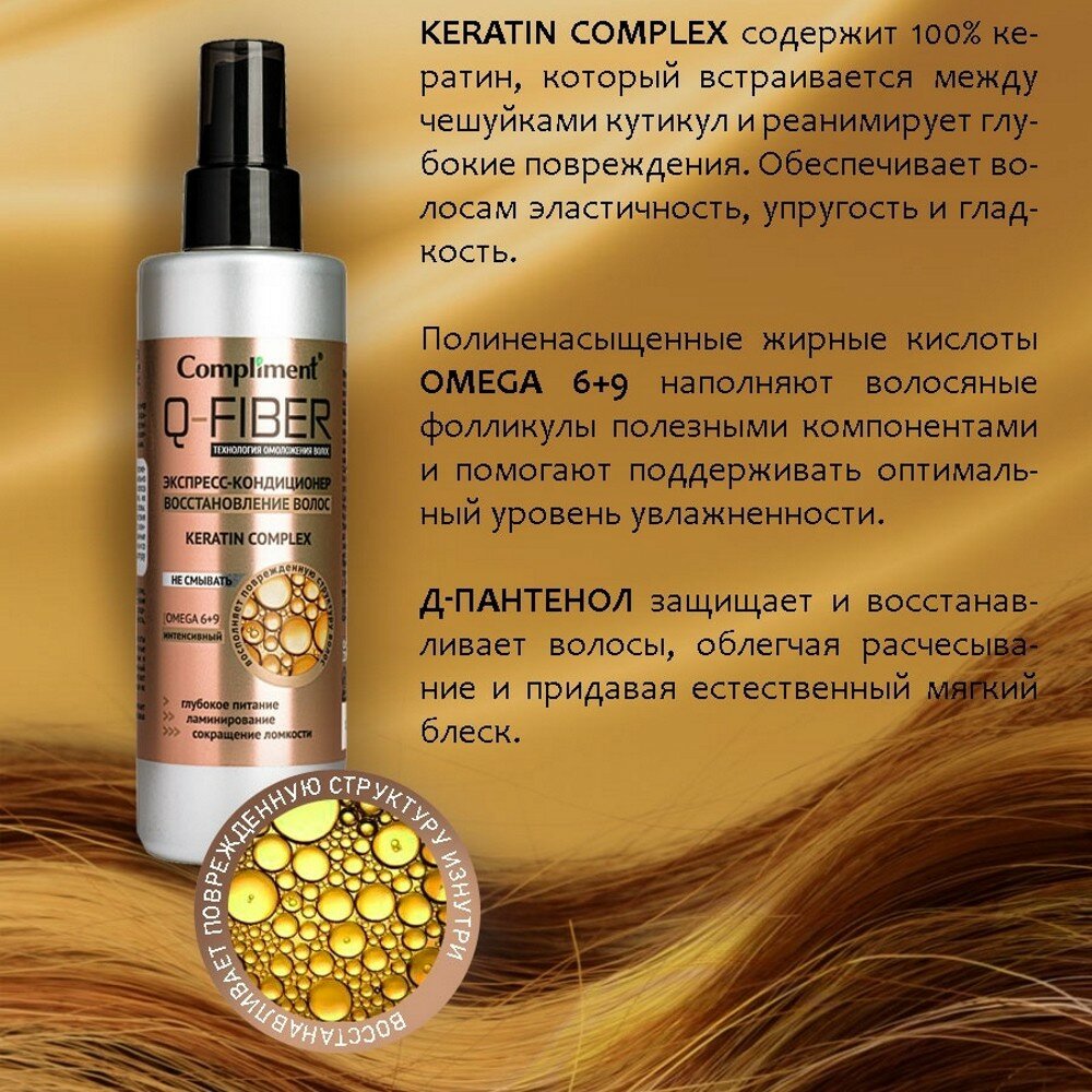 Кондиционер-экспресс восстановление волос Keratin complex Q-Fiber Compliment/Комплимент 200мл ООО ТИМЕКС ПРО (1582840)