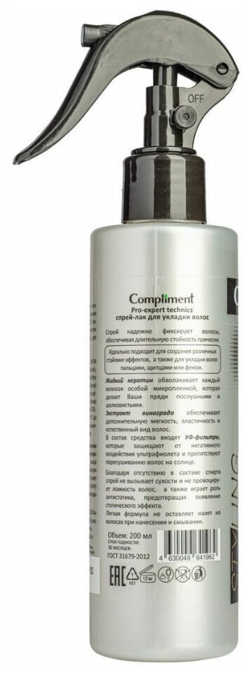 | Полное наименование | Спрей-лак Compliment для укладки волос, 200 мл |