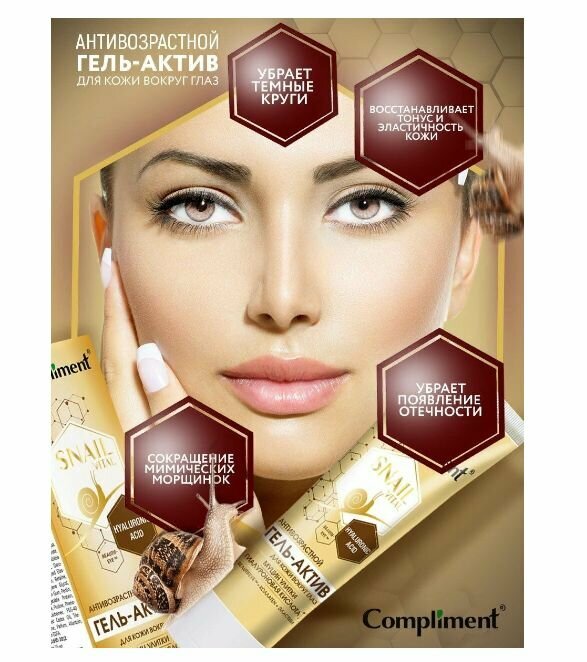 Гель для глаз Compliment Snail Vital создан с целью сократить видимые признаки старения нежной кожи вокруг глаз. Эффективное сочетание активных ингредиентов помогает свести к минимуму появление отечности и темных кругов, мелких мимических морщинок, восстанавливая тонус и эластичность кожи.
