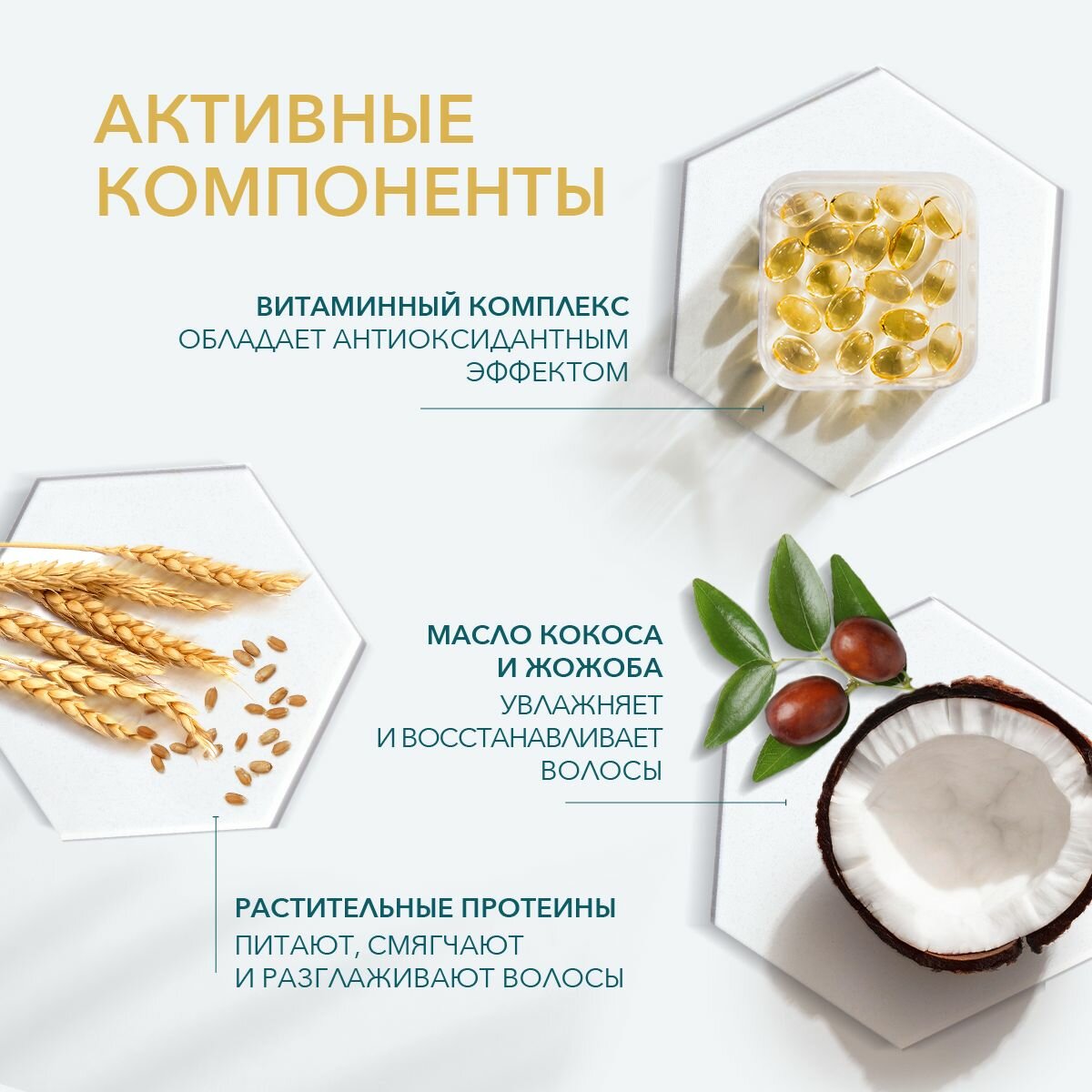 | Состав | aqua, cetearyl alcohol, cocos nucifera oil (масло кокоса), simmondsia chinensis seed oil (масло жожоба), cocos nucifera fruit water (органическая кокосовая вода), glycerin (глицерин растительного происхождения), betaine (бетаин из сахарной свеклы), hydrolyzed wheat protein (протеины пшеницы), hydrolyzed rye protein (протеины ржи), hydrolyzed oat protein (протеины овса), lauryl glucoside, behentrimonium сhloride, cetrimonium chloride, glyceryl stearate, guar hydroxypropyltrimonium chloride, niacinamide (витамин в3), calcium pantothenate (витамин b5), sodium ascorbyl phosphate (витамин с), tocopheryl acetate (витамин е), pyridoxine hcl (витамин в6), maltodextrin, sodium starch octenylsuccinate, silica, bis-cetearyl amodimethicone, citric acid, benzyl alcohol, sodium benzoate, potassium sorbate, parfum, coumarine, limonene, citral, citronellol |