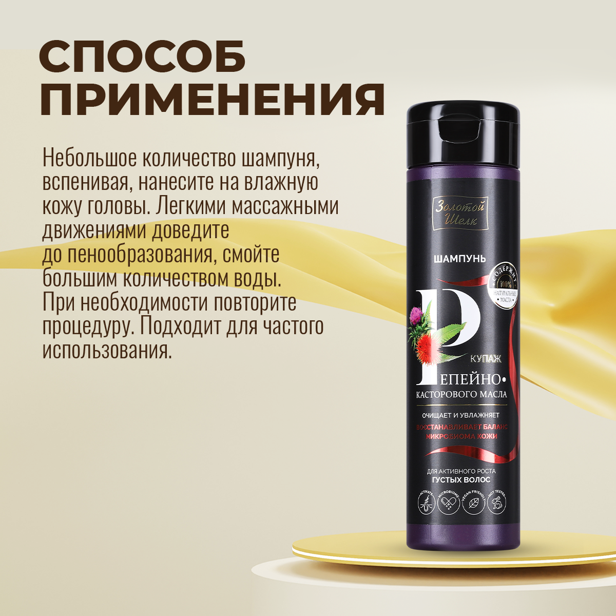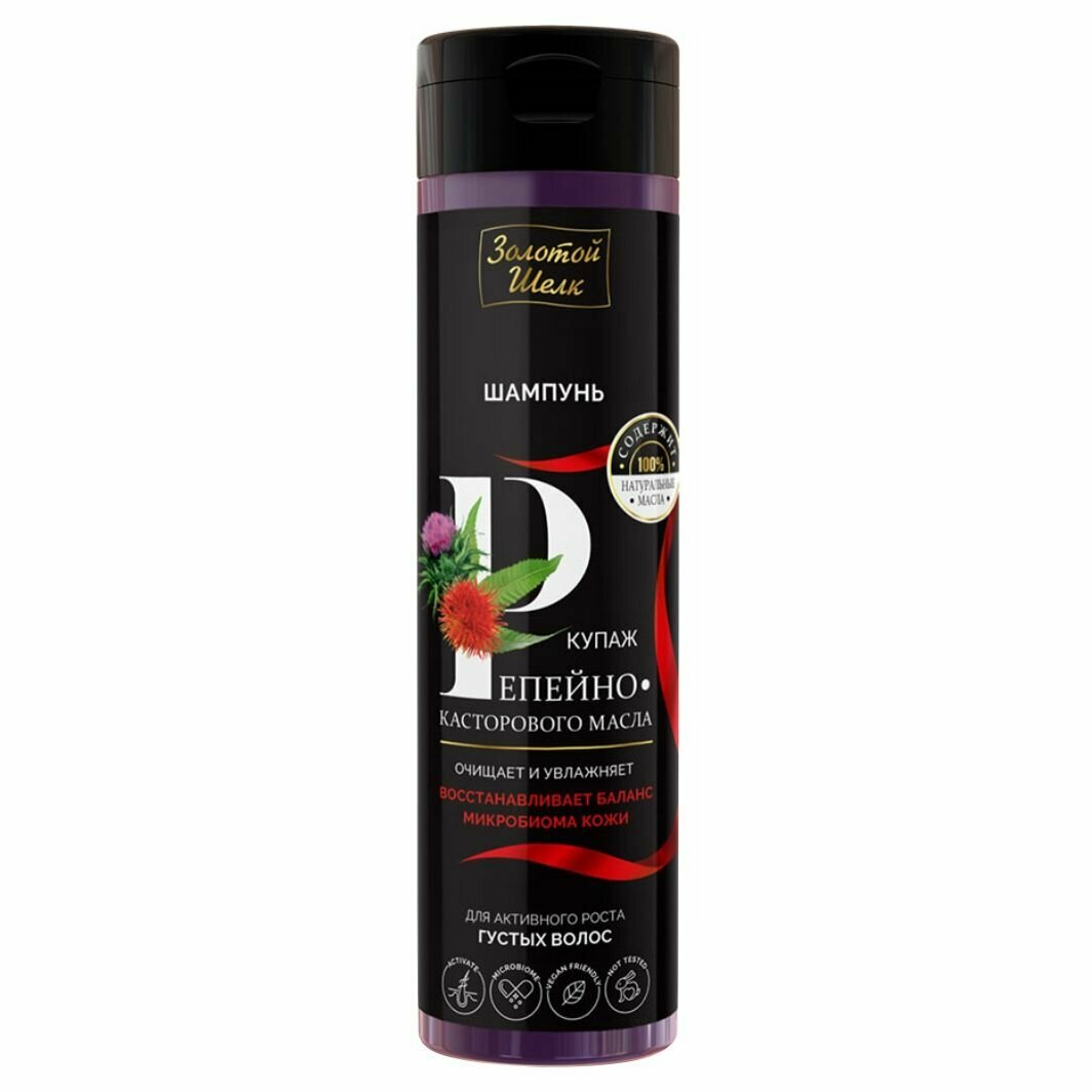 Шампунь для активного роста густых волос купаж репейно-касторового масла Золотой шелк фл. 250мл Народные Промыслы ООО (573297)