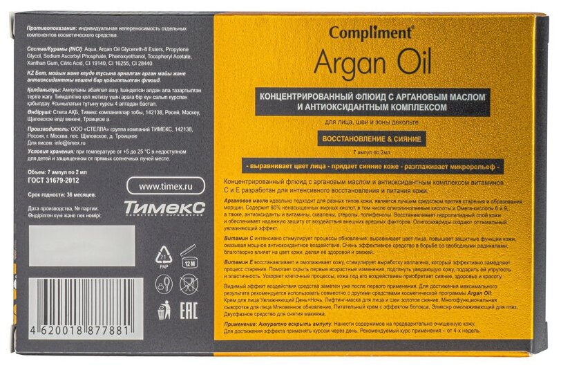 Флюид концентрированный с аргановым маслом и антиоксидантным комплексом Argan oil Compliment/Комплимент 2мл 7шт ООО ТИМЕКС ПРО (1582840)
