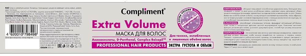 Маска для тонких ослабленных и лишенных объема волос Extra volume Compliment/Комплимент 500мл ООО ТИМЕКС ПРО (1582840)