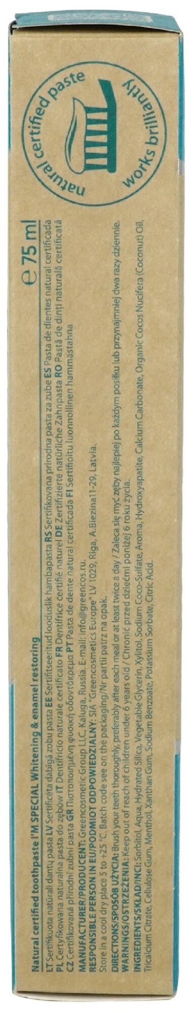 Паста зубная натуральная I'm special Whitening&Enamel restoring Ecocert Spa'Sta/Спа'Ста 75мл ООО Гринкосметик Групп (1586978)