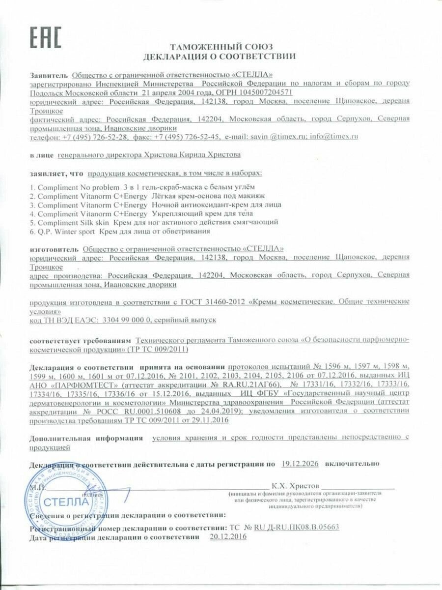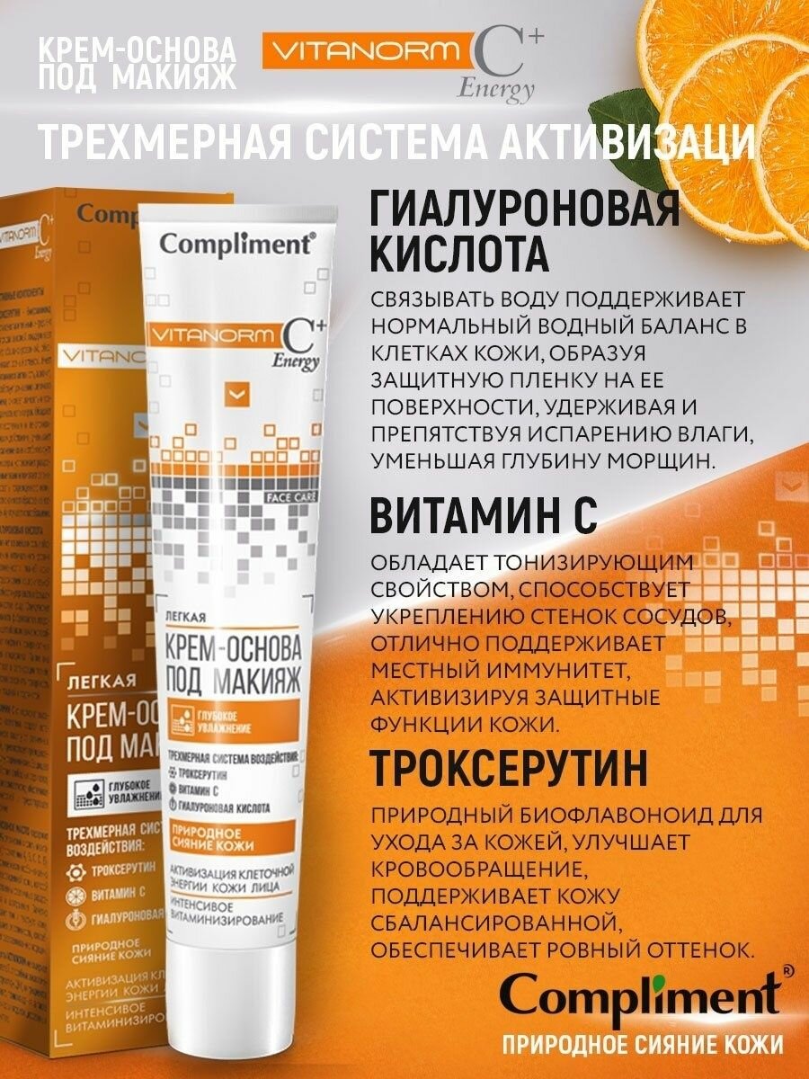 | Полное наименование | Compliment Vitanorm Легкая крем-основа под макияж 50 мл |