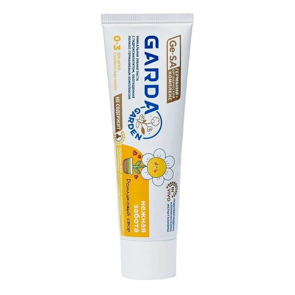 Зубная паста для детей GARDA Бережная защита BABY 0-3, это безопасная и натуральная защита зубов и десен с самого рождения.Молочные и коренные зубы прорезываются с очень тонким слоем эмали и чтобы кислоты не растворили её, нужна защита.Зубная паста очищает все поверхности полости рта удаляя мягкие зубные отложения.Гидроксиапатит обогащенный Polyol Germanium Complex (PGC) с аргинином, препятствует формированию патогенных биопленок и защищает зубы от кариеса, уплотняет эмаль зуба, восстанавливает баланс микрофлоры полости рта.Паста обладает нежным приятным фруктовым вкусом.
