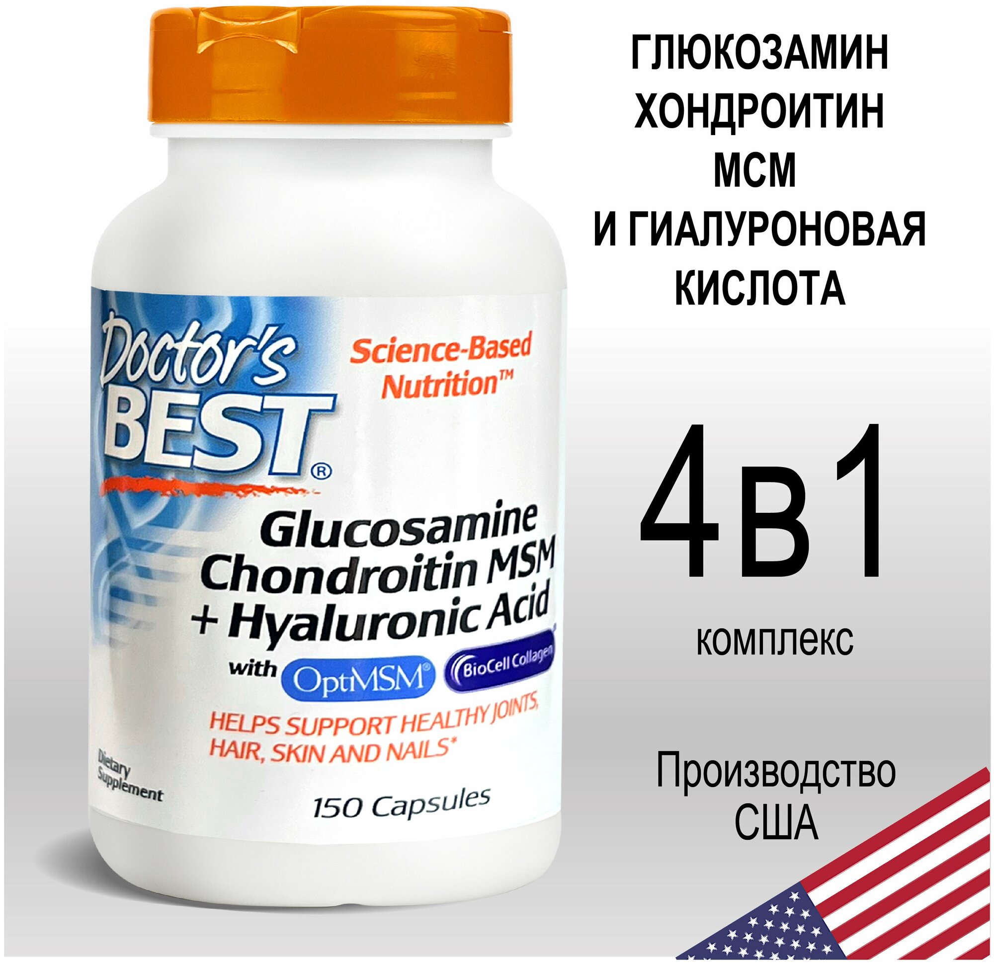 Глюкозамин хондроитин МСМ+Гиалуроновая кислота Doctor's Best/Доктор Бэст капсулы 110мг 150шт 123-500