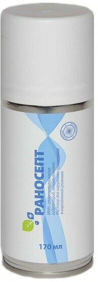 Раносепт обладает антисептическими, ранозаживляющими, антимикробными и противовоспалительными свойствами. Раносепт в качестве действующих веществ в 1 мл содержит хлортетрациклина гидрохлорид — 17 мг, генцианвиолет — 4 мг и вспомогательные вещества. По внешнему виду препарат представляет собой раствор фиолетового цвета. Раносепт применяют местно всем видам животных для лечения ран хирургического и травматического происхождения, ссадин, царапин, поражений кожи. Перед употреблением препарат необходимо хорошо взболтать, удерживая баллон в вертикальном положении распылительной головкой вверх и резко встряхивая до отделения металлического шарика, находящегося внутри баллона (характерный стук) и далее в течение 5-10 сек. Раносепт распыляют в течение 1-2 секунд с расстояния 15-20 см от пораженной поверхности. Дают впитаться в течение 5 минут, не позволяя животному слизать лекарственное средство. Обработку проводят один-три раза в сутки. Продолжительность лечения зависит от тяжести и скорости заживления, но не должна превышать 10 дней.