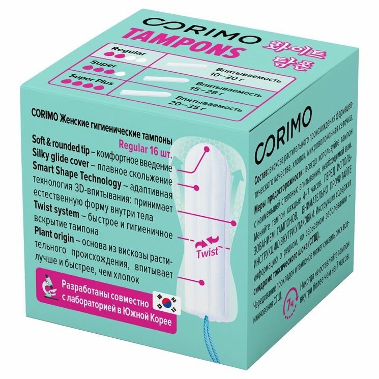 Современные и технологичные тампоны разработаны совместно с лабораторией в Южной Корее.
