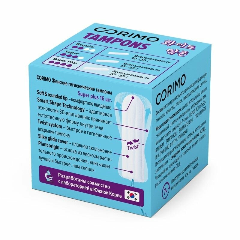Современные и технологичные тампоны разработаны совместно с лабораторией в Южной Корее.