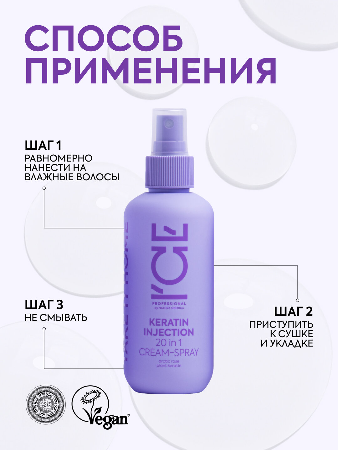 Спрей для поврежденных волос кератиновый 20 в 1 Keratin Injection ICE Professional Natura Siberica/Натура Сиберика 200мл ООО Натура Сиберика (1525014)
