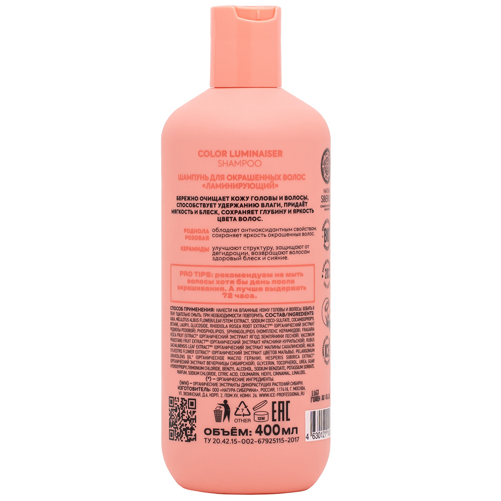 Шампунь для окрашенных волос ламинирующий Color Luminaiser ICE Professional Natura Siberica/Натура Сиберика 400мл ООО Натура Сиберика (1525014)