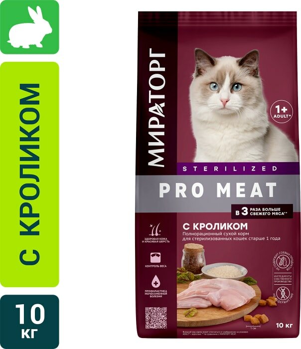 Корм сухой для стерилизованных кошек старше 1г c кроликом Pro Meat Мираторг 15кг СК Короча (2505314)