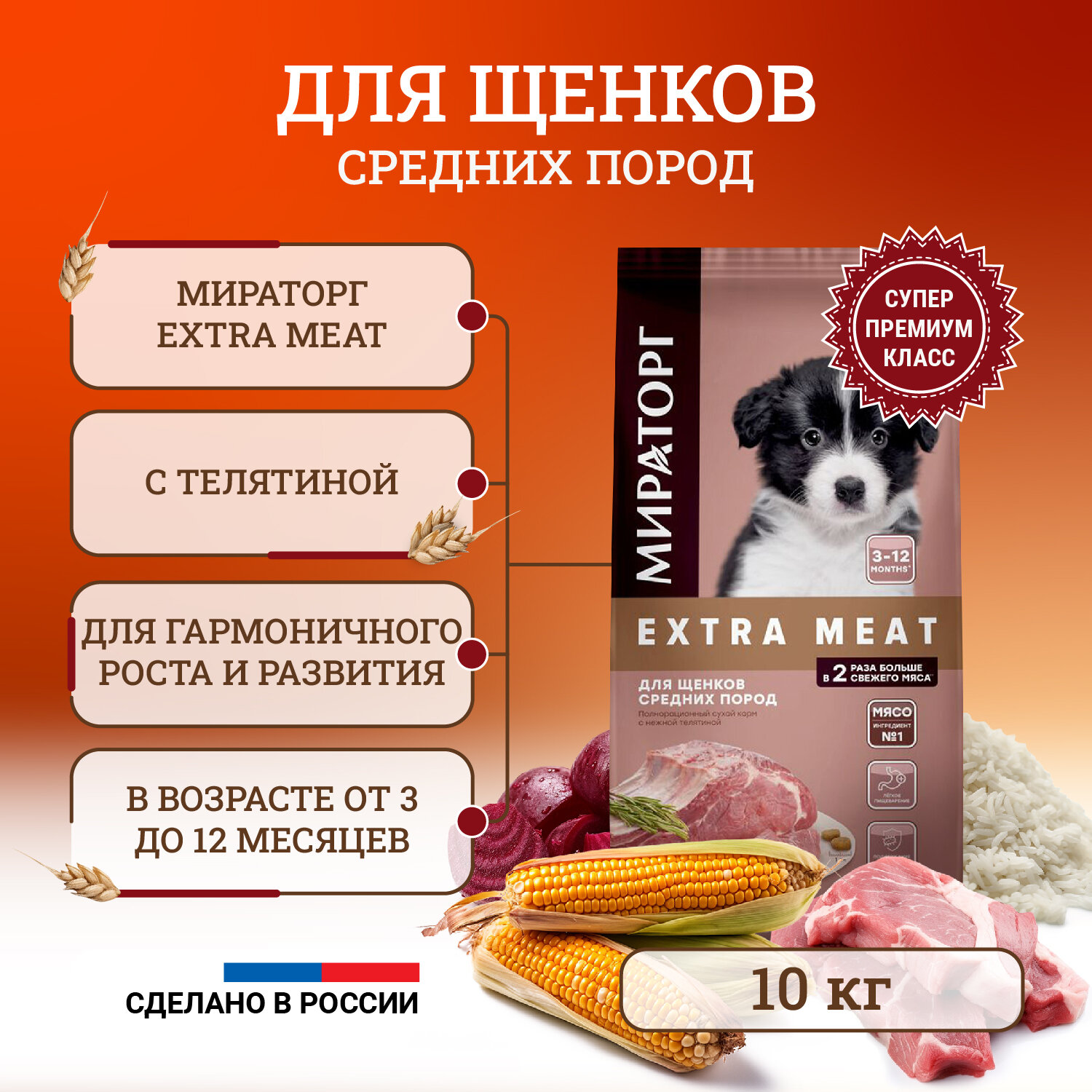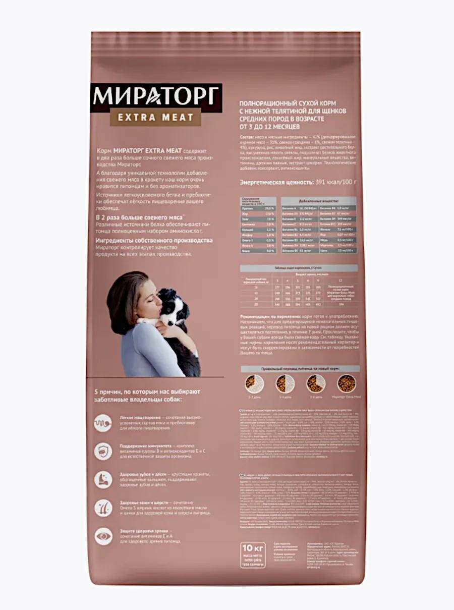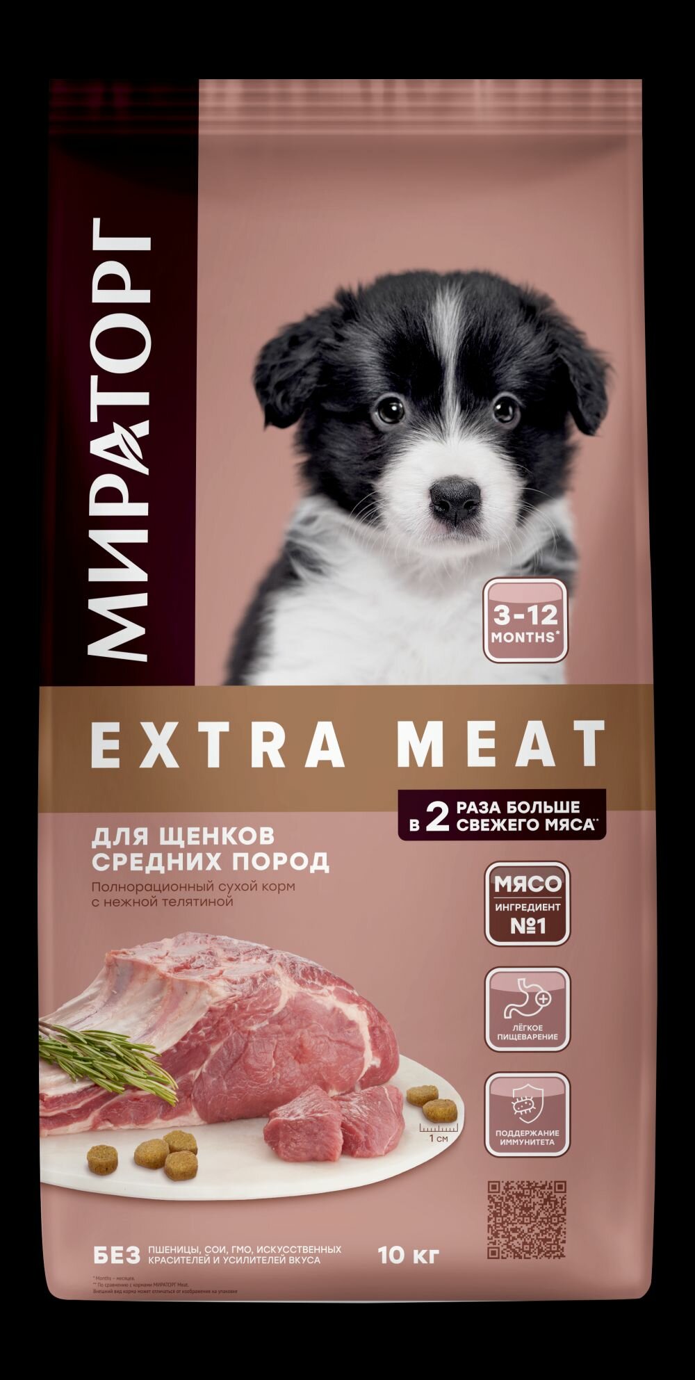 Корм сухой для щенков средних пород в возрасте от 3 до 12 мес. c нежной телятиной Extra Meat Мираторг 10кг СК Короча (2505314)