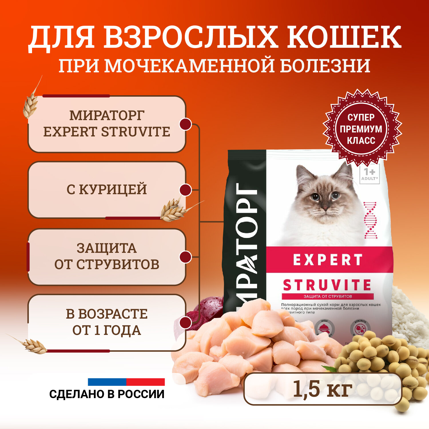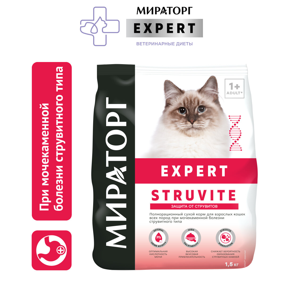 Корм сухой для взрослых кошек при мочекаменной болезни струвитного типа Expert Мираторг 15кг СК Короча (2505314)
